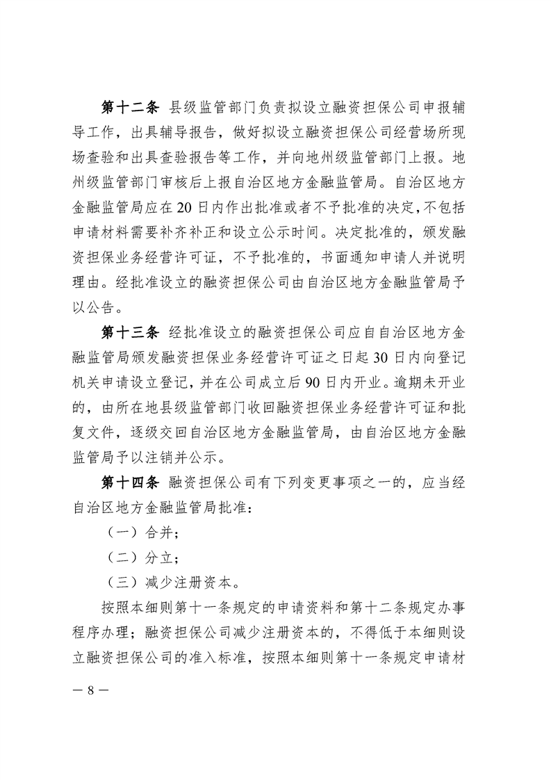 关于印发《新疆维吾尔自治区实施融资担保公司监督管理条例细则》的通知