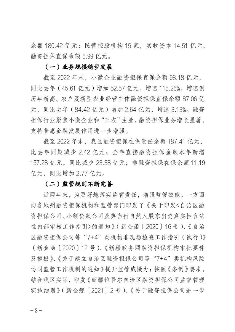 新疆维吾尔自治区融资担保行业2022年度监管与发展报告