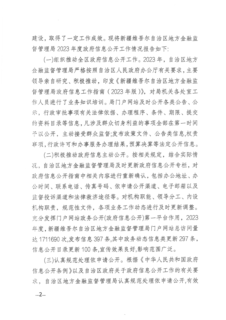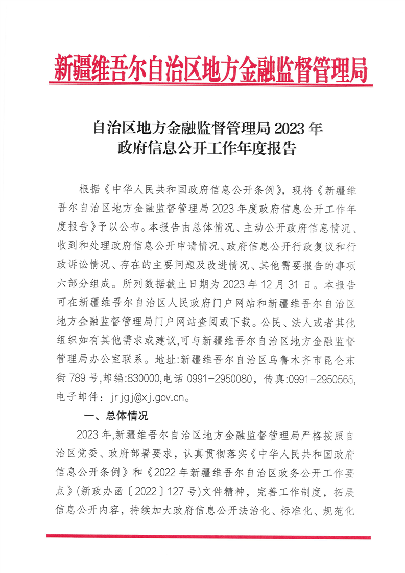 自治区地方金融监督管理局2023年政府信息公开工作年度报告