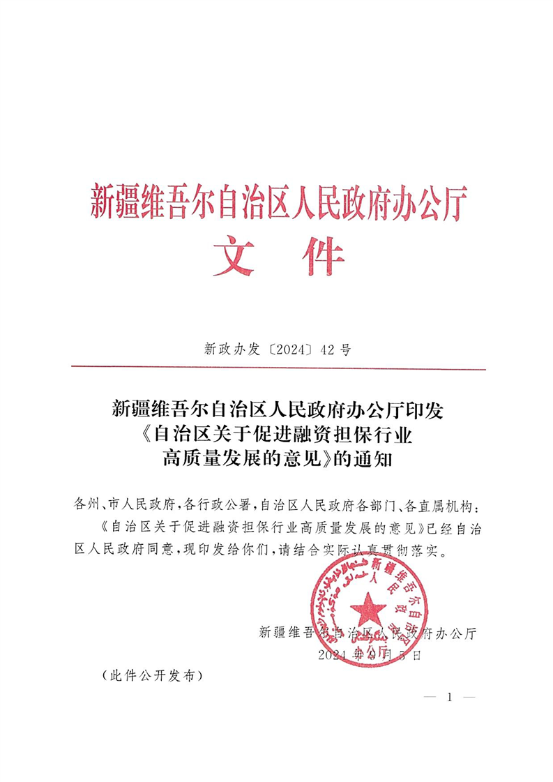 半岛国际体育印发《自治区关于促进融资担保行业高质量发展的意见》的通知