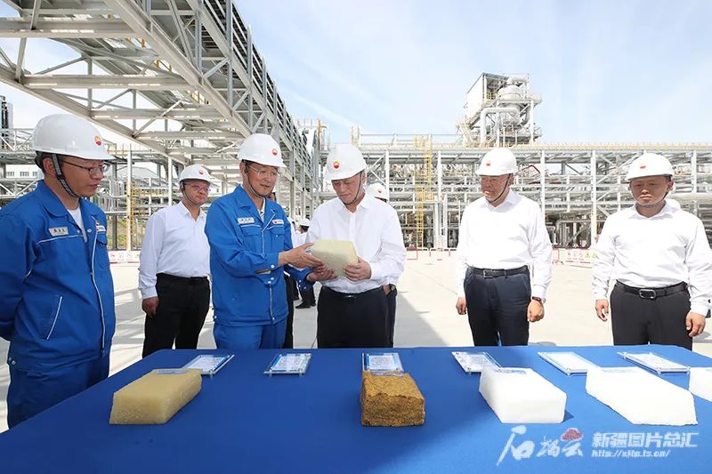7月24日,自治区党委书记马兴瑞在中国石油独山子石化公司察看产品展示,深入了解企业改革经营发展情况。石榴云/新疆日报记者 崔志坚摄
