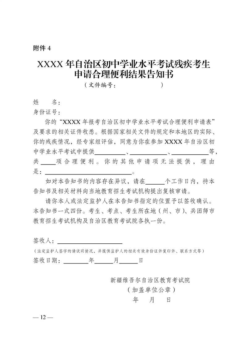 标题:关于印发《残疾人参加新疆维吾尔自治区初中学业水平考试考务工作实施细则》的通知