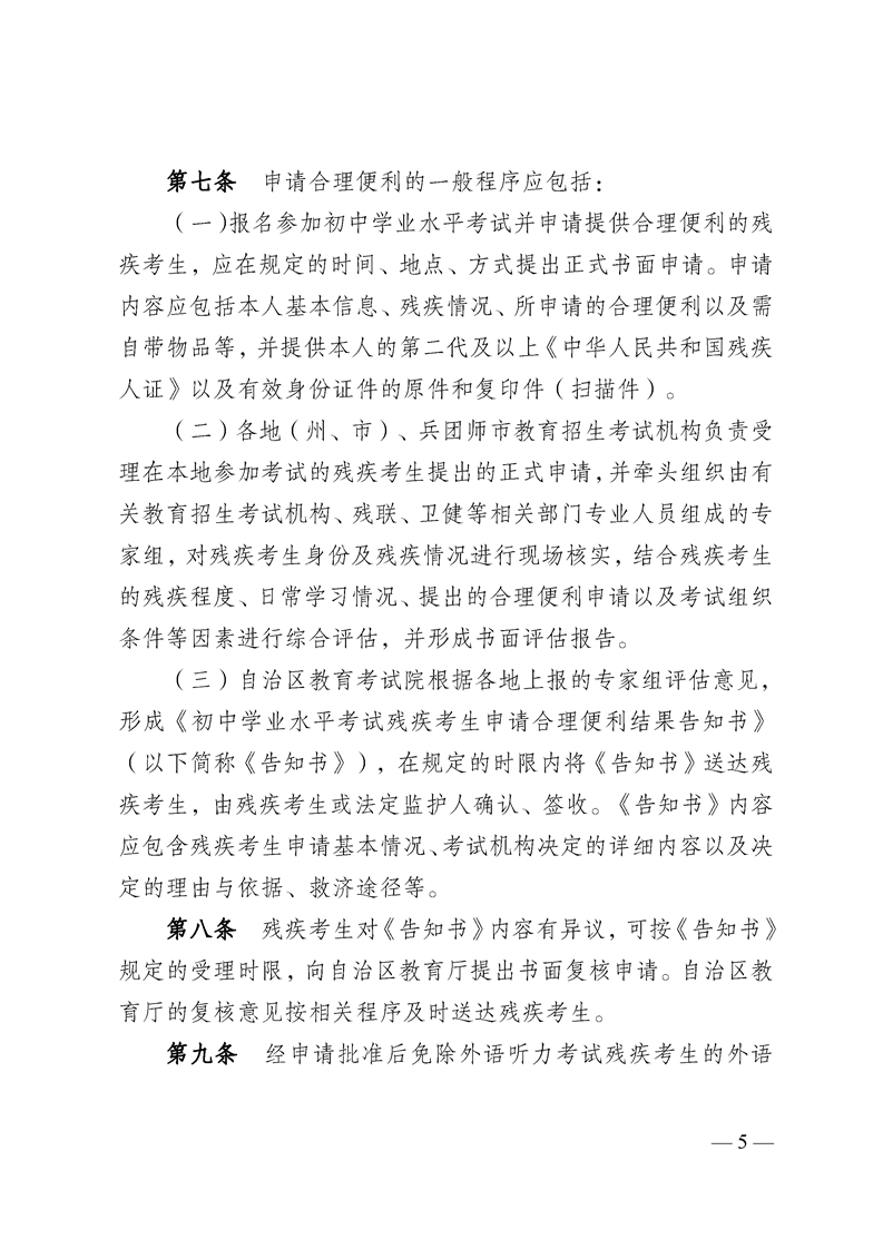 《残疾人参加新疆维吾尔自治区初中学业水平考试考务工作实施细则》政策解读