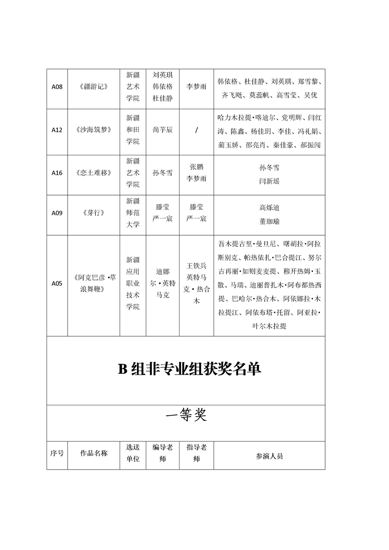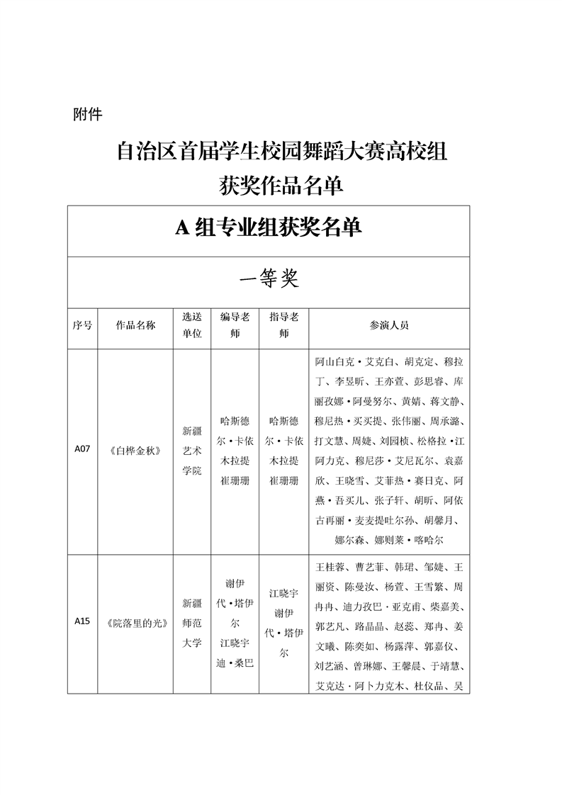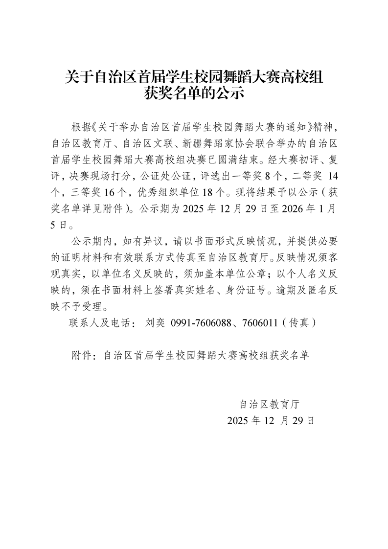 关于自治区首届学生校园舞蹈大赛高校组获奖名单的公示