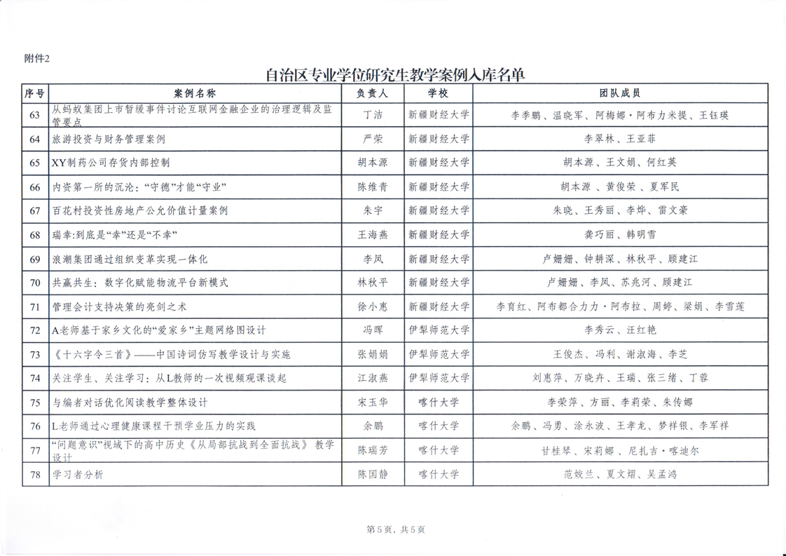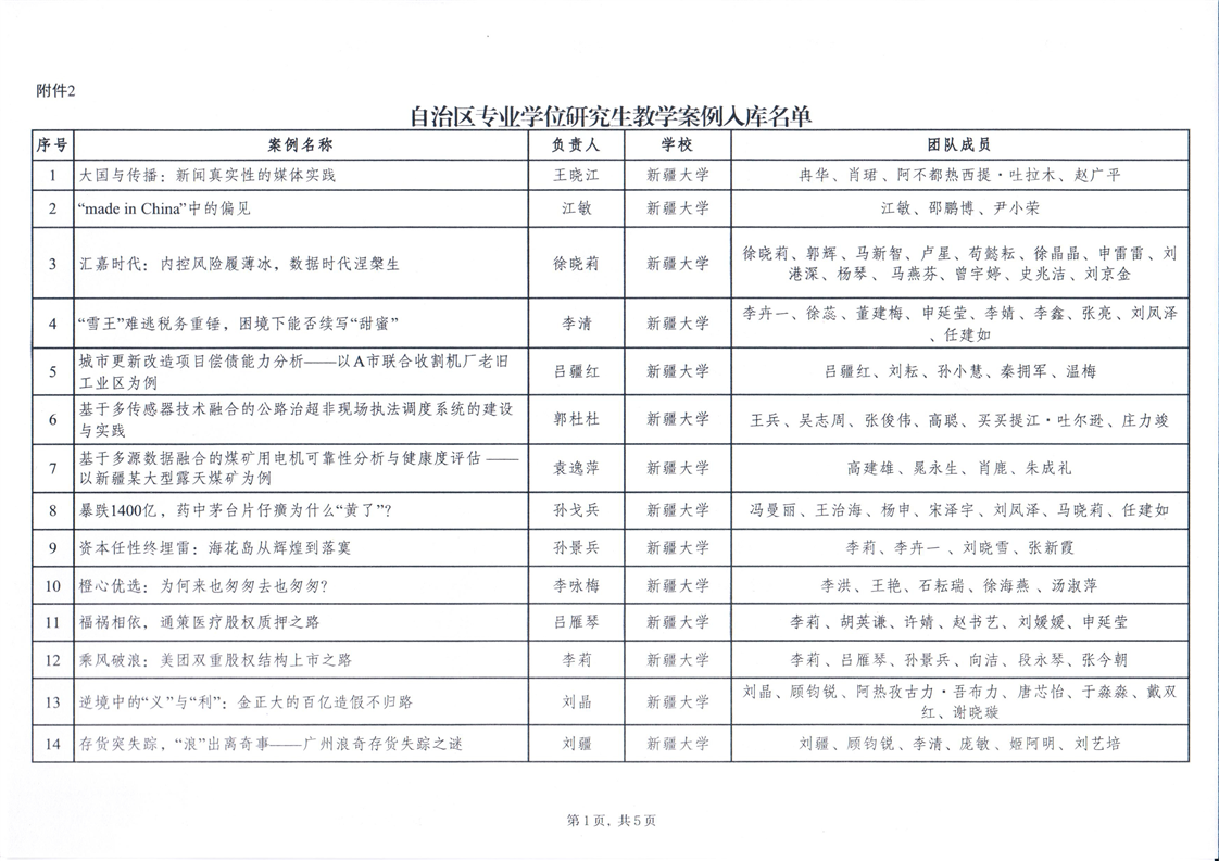 标题:关于公布自治区研究生精品示范课程建设名单和专业学位研究生教学案例入库名单的通知