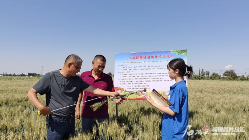 昌吉国家农高区现代农业产教联合体科研人员在小麦示范田进行测产。资料图