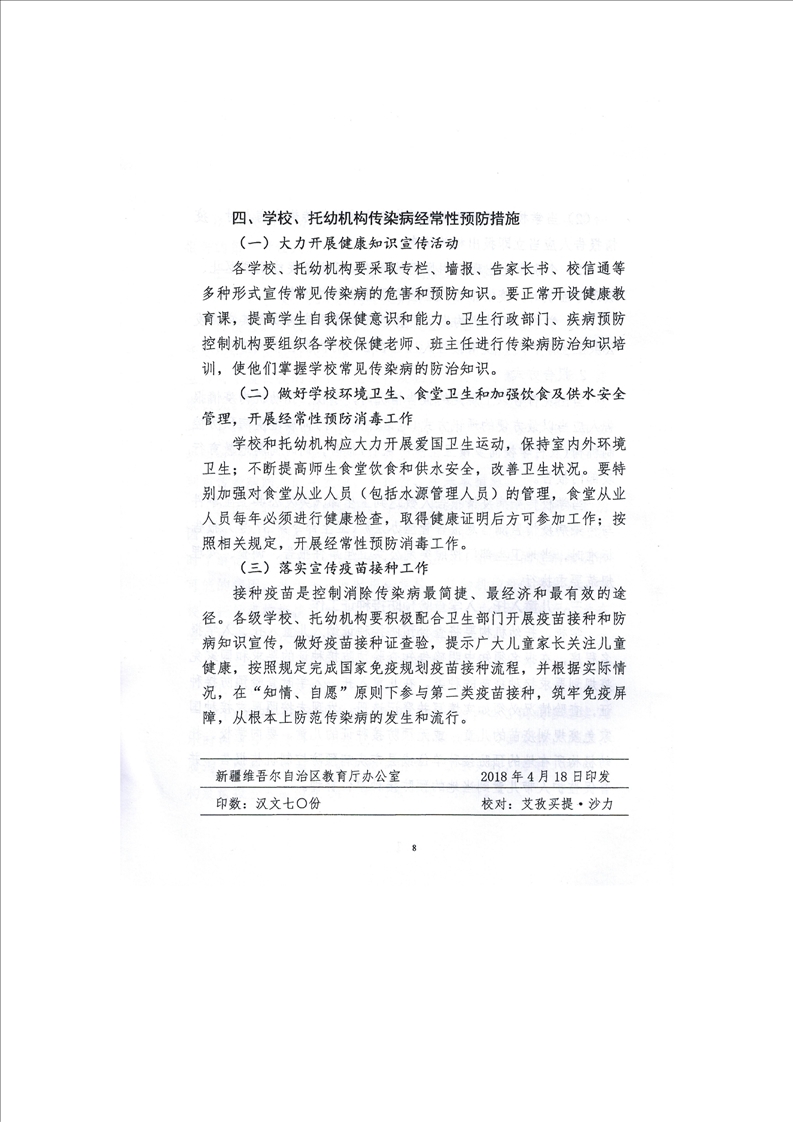 标题:关于印发学校和托幼机构传染病防控工作实施方案的通知