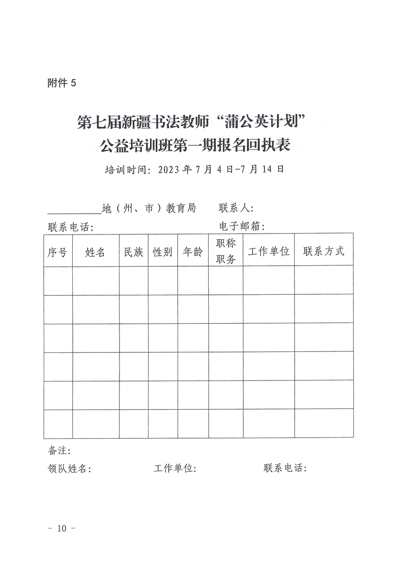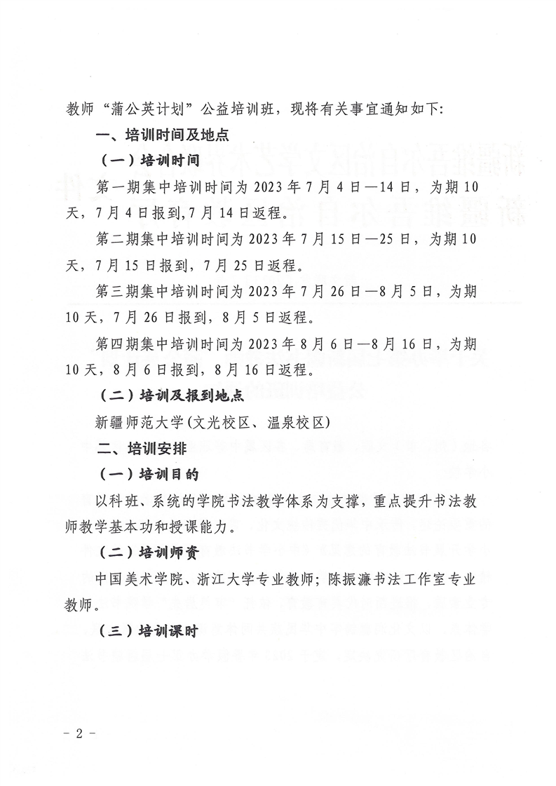 标题:关于举办第七届新疆书法教师“蒲公英计划”公益培训班的通知