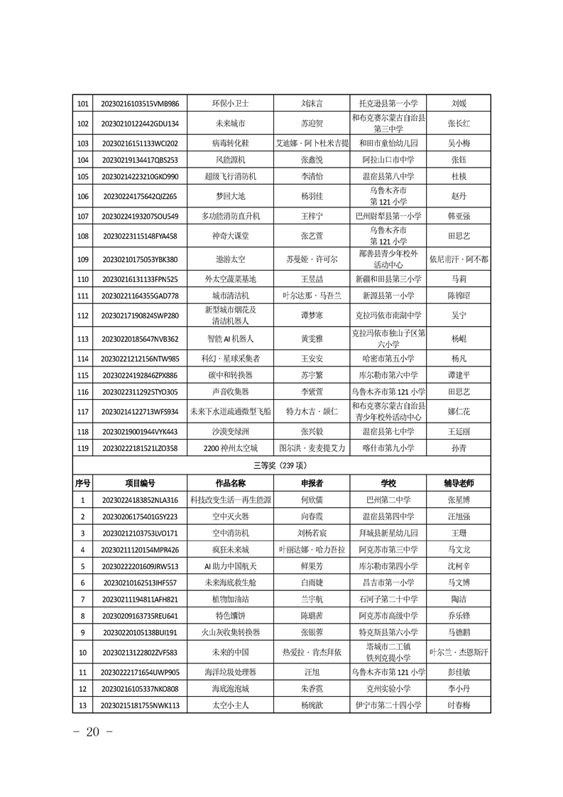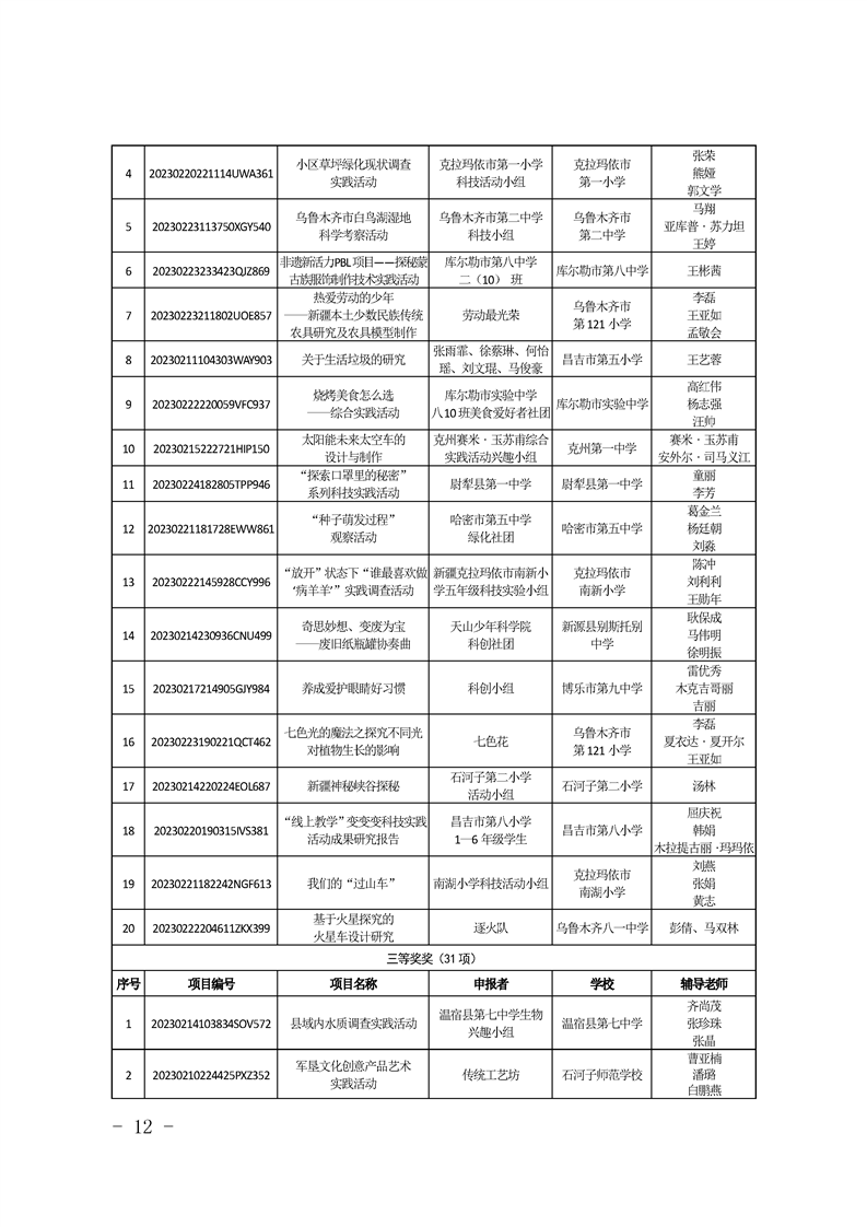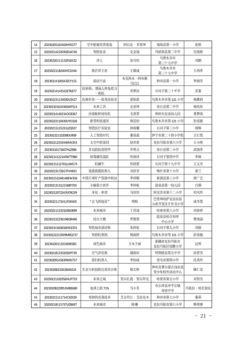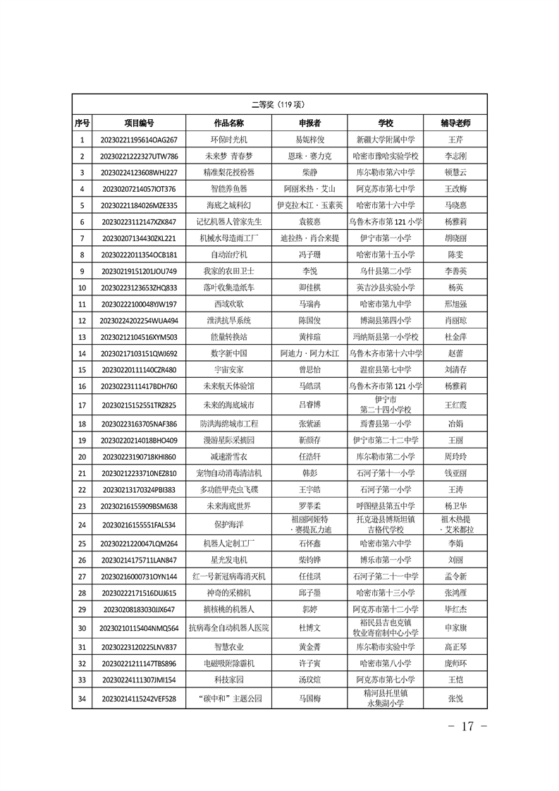 标题:关于公布第37届新疆青少年科技创新大赛获奖情况的通知