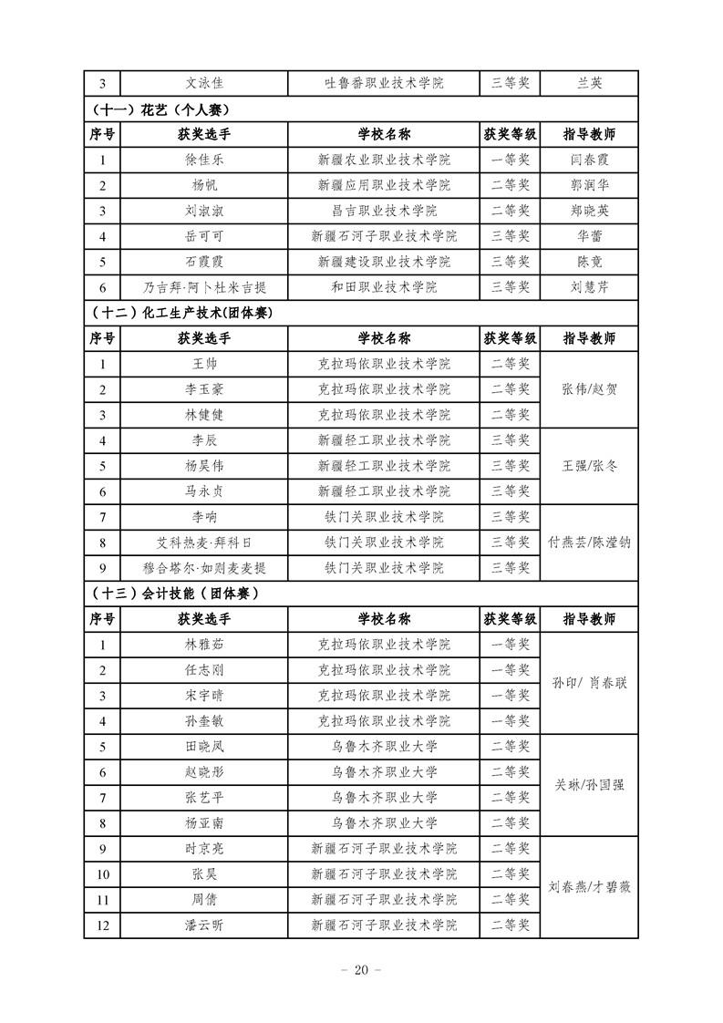 关于公布2021年自治区职业院校技能大赛获奖名单的通知