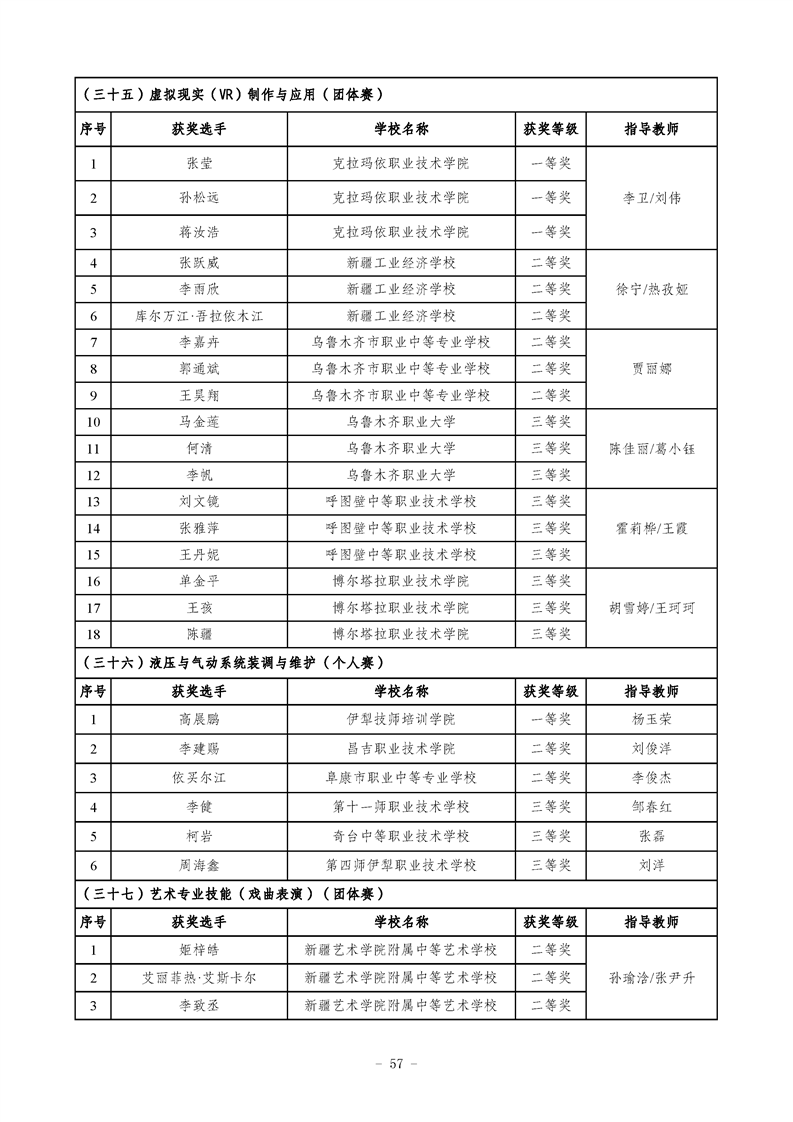 标题:关于公布2021年自治区职业院校技能大赛暨全国职业院校技能大赛新疆选拔赛获奖名单的通知