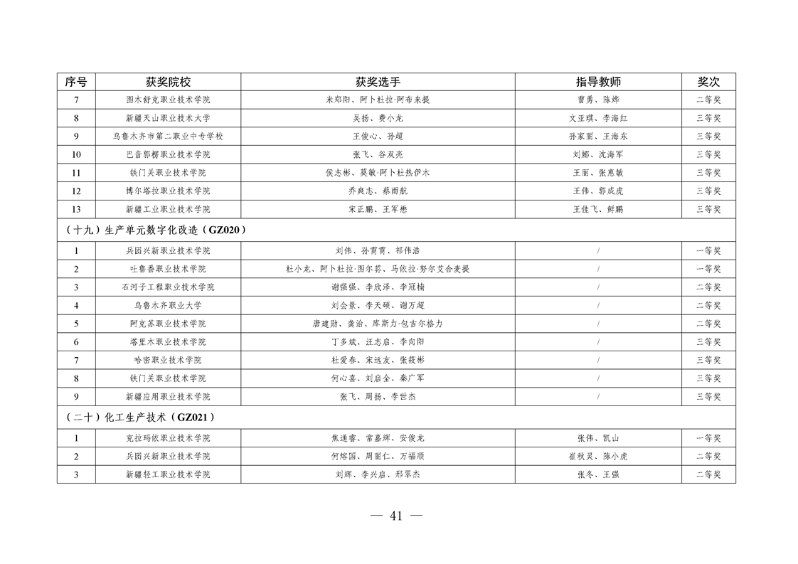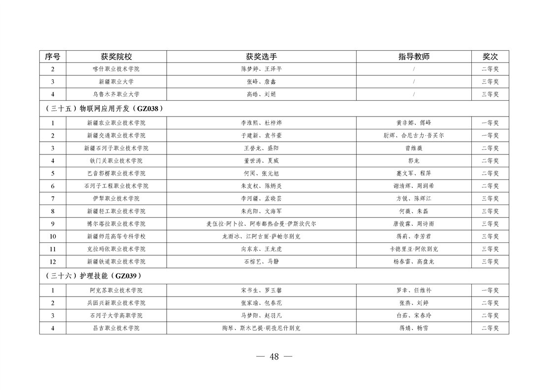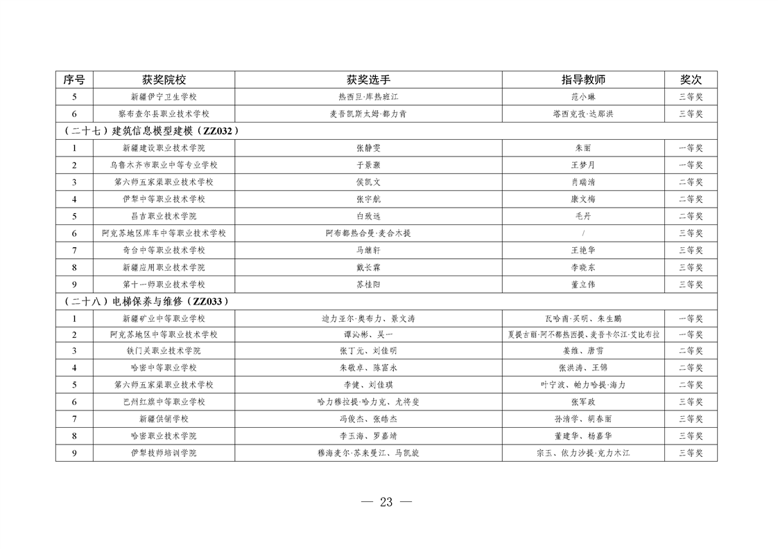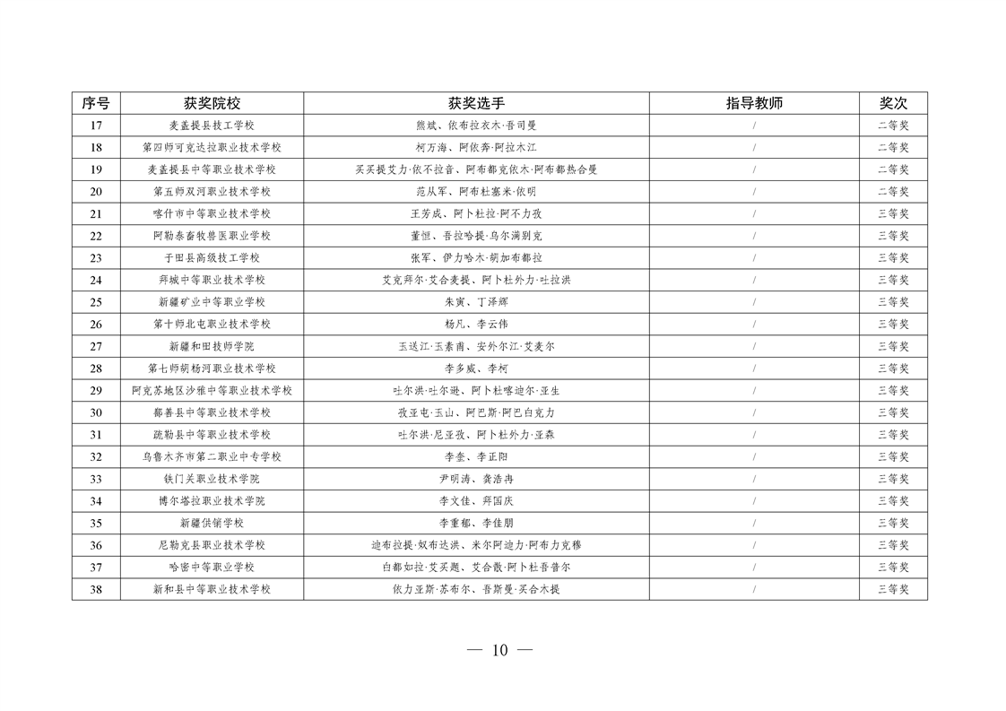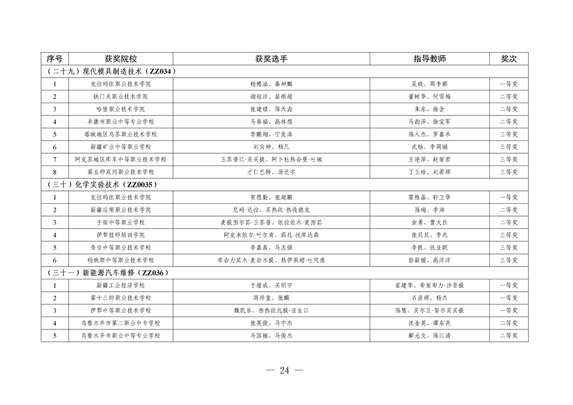 标题:关于公布2024年自治区职业院校技能大赛暨全国职业院校技能大赛新疆选拔赛获奖信息的通知