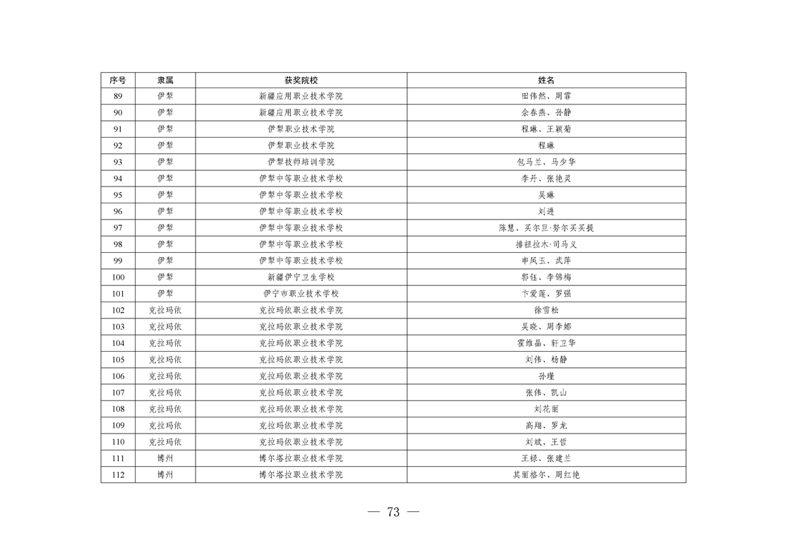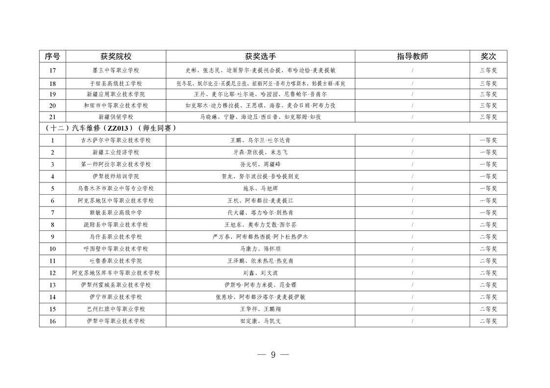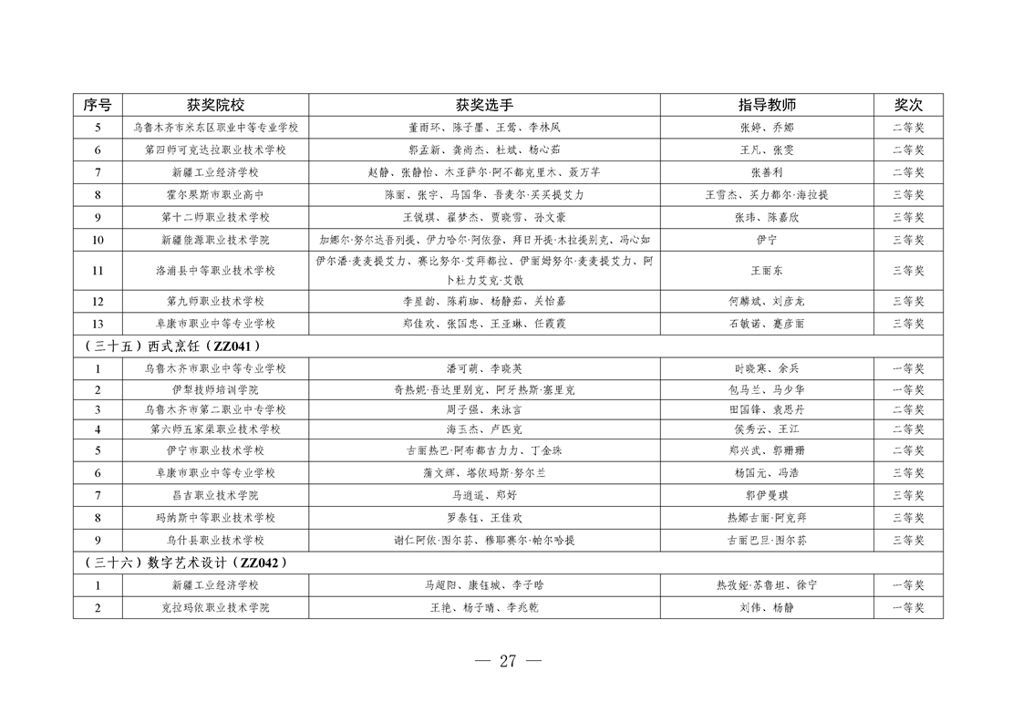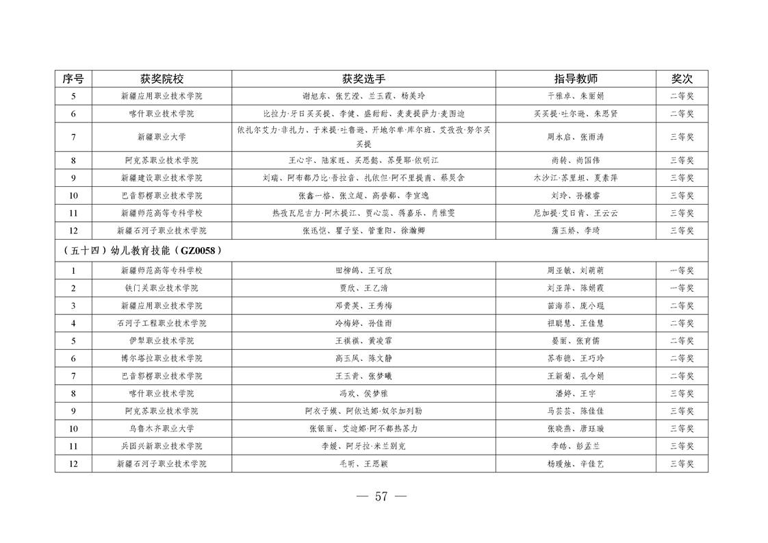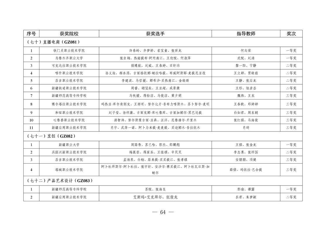 标题:关于公布2024年自治区职业院校技能大赛暨全国职业院校技能大赛新疆选拔赛获奖信息的通知