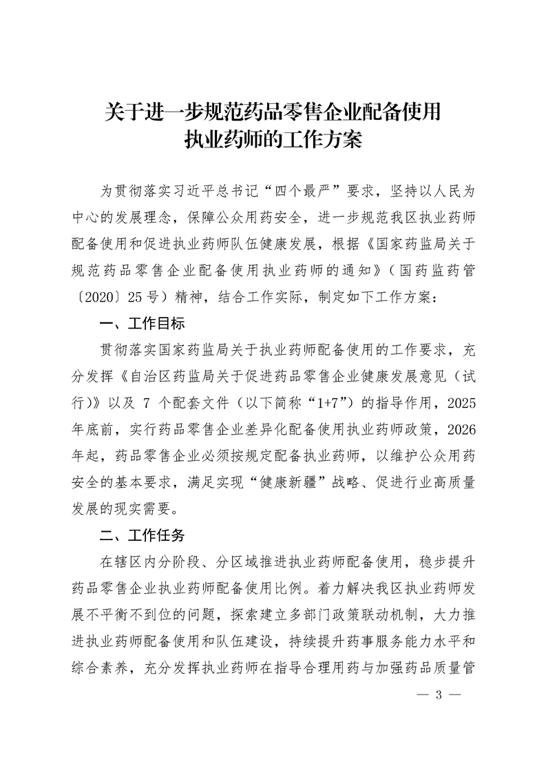 关于印发《关于进一步规范药品零售企业配备使用执业药师的工作方案》的通知