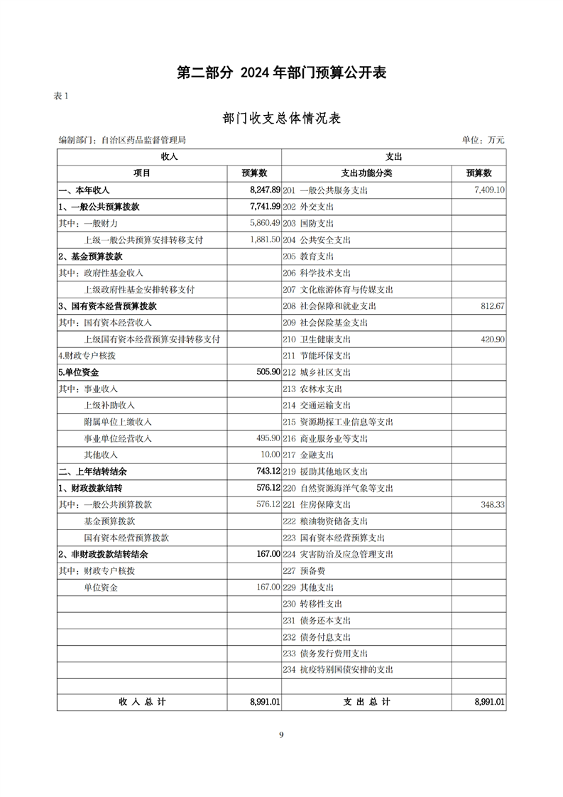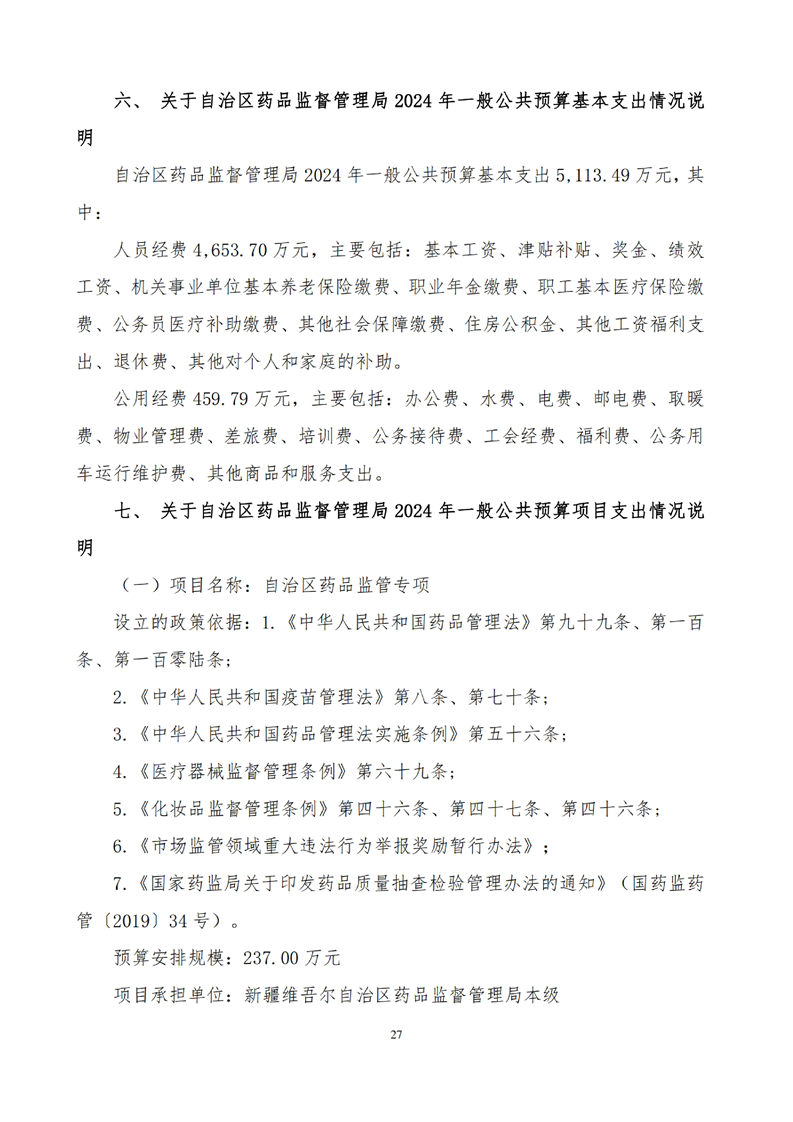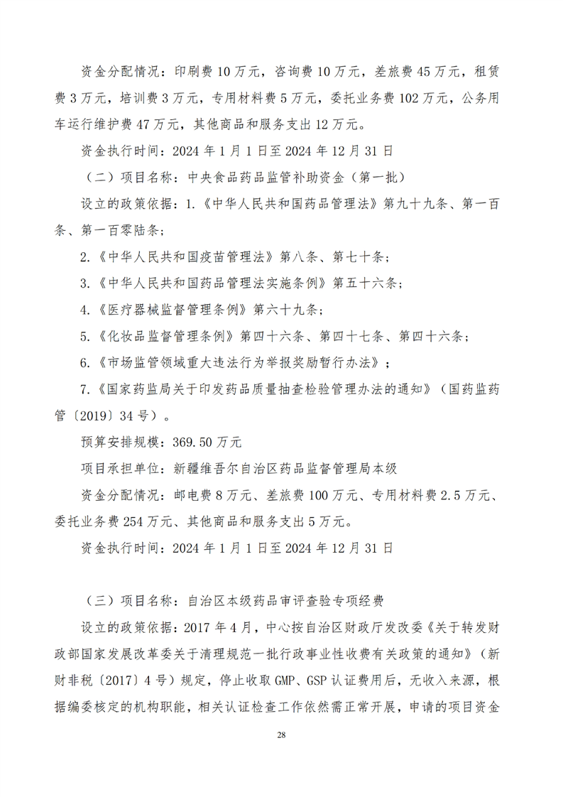 新疆维吾尔自治区药品监督管理局2024年部门预算公开报告