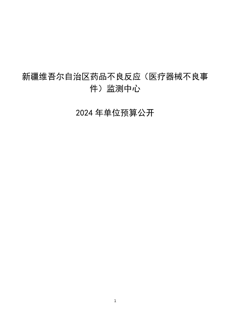 新疆维吾尔自治区药品不良反应(医疗器械不良事件)监测中心2024年单位预算公开报告
