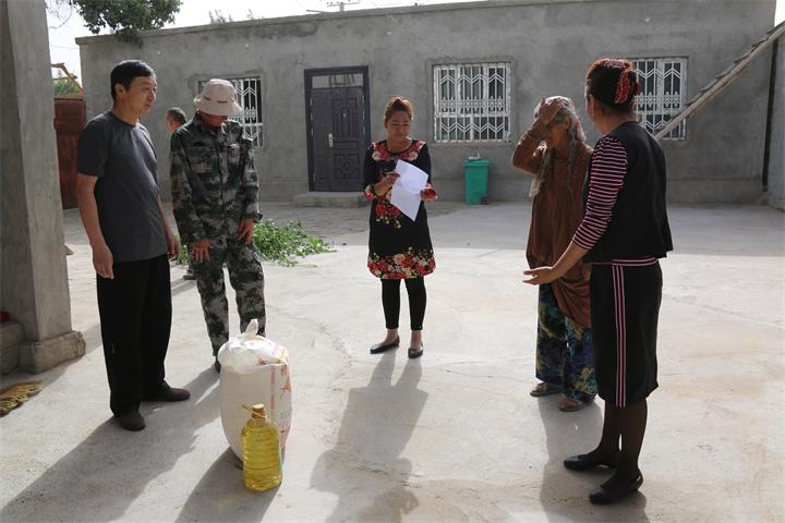 肉孜节即将来临,工作队为村里的70户贫困户准备了面粉、清油等慰问品。上午十点,工作队员和村干部分三组带着党的关怀和温暖来到村民家中,每到一户工作队都和他们促膝交谈,详细询问家庭生产和生活情况,鼓励困难村民家庭要依托党的惠民政策,靠勤劳早日摆脱困境。在村民布阿西·玉努斯家中,老人紧紧握住马书记的手,眼含热泪的说道:“感谢党和政府的恩情,工作队来了太好了,自从了解到我家里的情况,工作队就一直没有忘记我们,逢年过节总带着礼物来看我,现在要过肉孜节了,又给我送来面粉和清油,真是太感谢你们了。肉孜节的时候你们一定要来。”