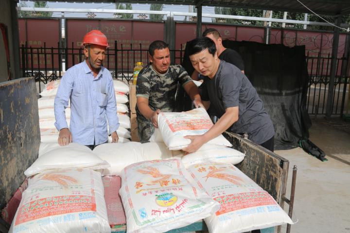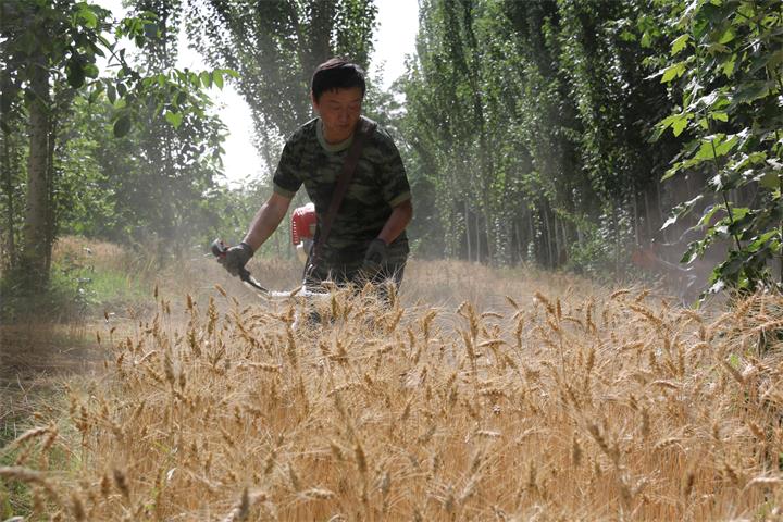 队员们还惦记着今天的另一项任务—帮助困难家庭收割小麦。村子里有部分家庭缺少劳动力,为了保障小麦颗粒全收、及时复播玉米,工作队马不停蹄,带着小型电动收割机和镰刀来到了麦田,大家顶着烈日,热火朝天的干了起来,看着一排排整齐的麦垛村民们脸上洋溢着丰收的喜悦。村民热依汗古丽·阿布力米提说:眼看着麦子熟了,可是家里没有劳动力我身体又有残疾,担心过不了几天麦子就要倒伏,一直在犯愁,多亏了工作队的帮忙,及时帮我们完成了收割。