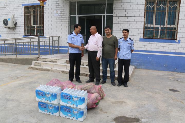 “八一”建军节来临之际,自治区民委(宗教局)驻科克铁热克乡拜勒库木村工作队和村委会慰问民族团结共建单位皮山县边防大队。工作队副队长艾尔肯·伊明尼牙孜代表工作队和村委会向边防大队赠送了西瓜、矿泉水等慰问品,感谢边防大队在维护社会稳定、巩固边防安定方面做出的巨大贡献,边防大队与拜勒库木村结为民族团结共建单位以来,积极参加共建活动,帮助村委会训练民兵、规范升国旗仪式,提升了拜勒库木村创建全国民族团结进步示范村的效果。公安边防大队政治委员张贵山对工作队和村委会的慰问表示了感谢,并表示通过民族团结共建活动,进一步巩固发展了军民(警民)关系,切实有效地推进民族团结进步创建“八进”中“进军营(警营)”工作。双方约定将开展一次民族团结联谊活动,进一步促进拜勒库木村群众与边防大队官兵的相互交流、相互了解、相互支持,形成“军爱民、民拥军、军民团结一家亲”的良好氛围,使维护民族团结、反对民族分裂成为各族群众的自觉行动。