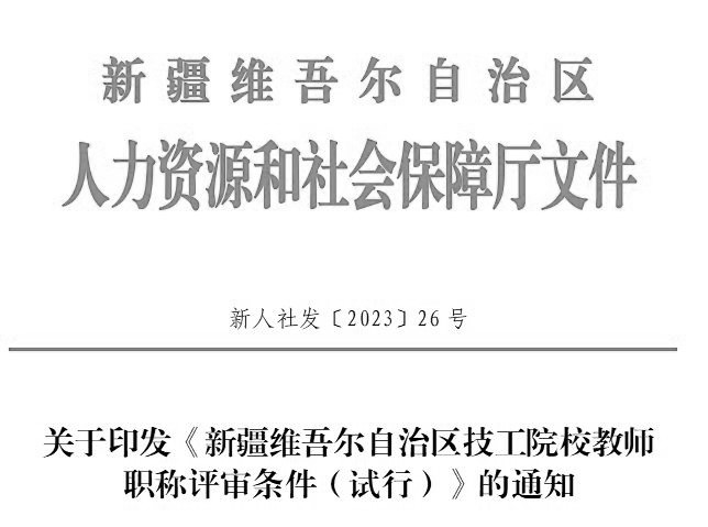 现将新修订的《新疆维吾尔自治区技工院校教师职称评审条件(试行)》印发给你们,请认真遵照施行。