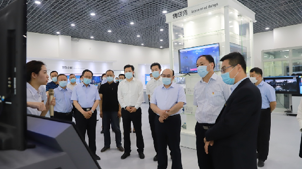 许小宁一行参观新疆移动5G 联合创新基地,详细了解基于5G、物联网、大数据、云计算、网络安全、AI技术的智慧城市建设发展前景,现场体验5GAR眼镜、5GVR眼镜、智慧家庭系列产品等。