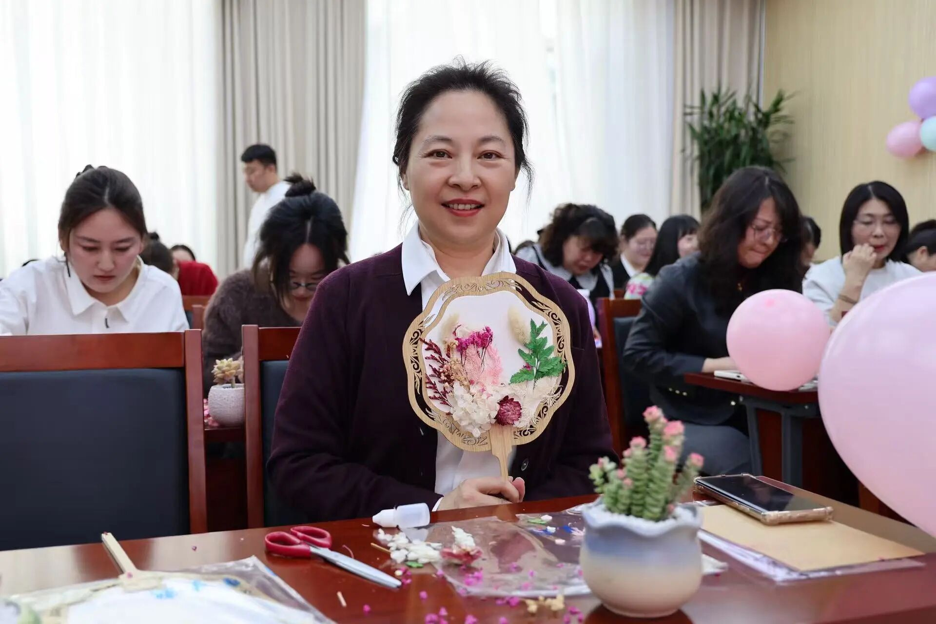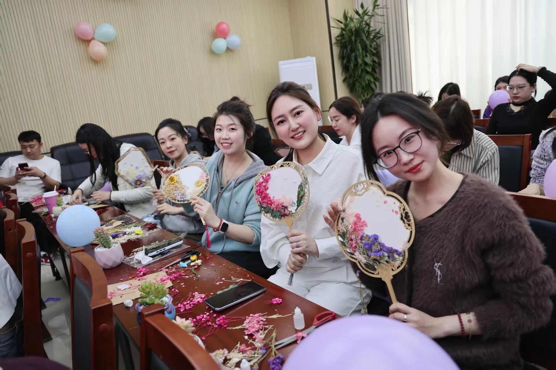 活动现场暖意融融,内容丰富、形式多样。活动特意邀请护肤领域专业讲师,带来一场干货满满的护肤专题讲座。在轻松愉悦的手工团扇制作环节,女同志们卸下工作的疲惫,一边专注创作,一边相互交流技巧、分享喜悦,现场氛围温馨而热烈。男同志们精心录制祝福视频,以真挚的话语、暖心的表达,为女同志们送上了最诚挚的节日祝福,尽显同事间的深厚情谊。