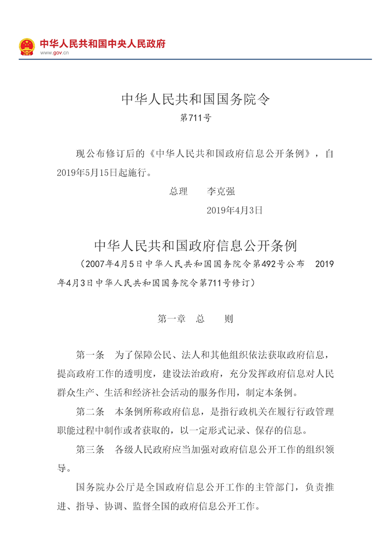 中华人民共和国政府信息公开条例