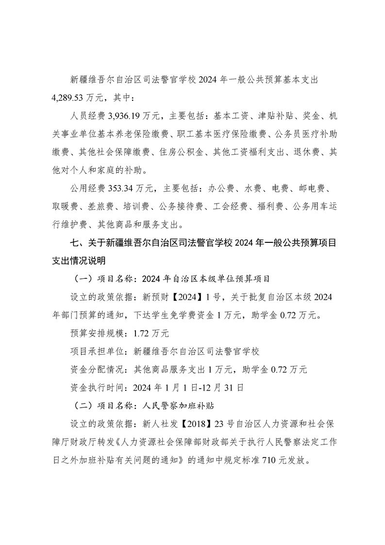 新疆维吾尔自治区司法警官学校2024年单位预算公开