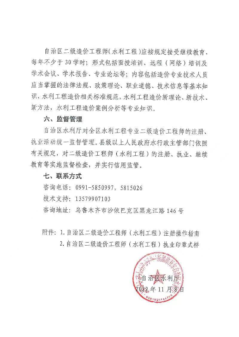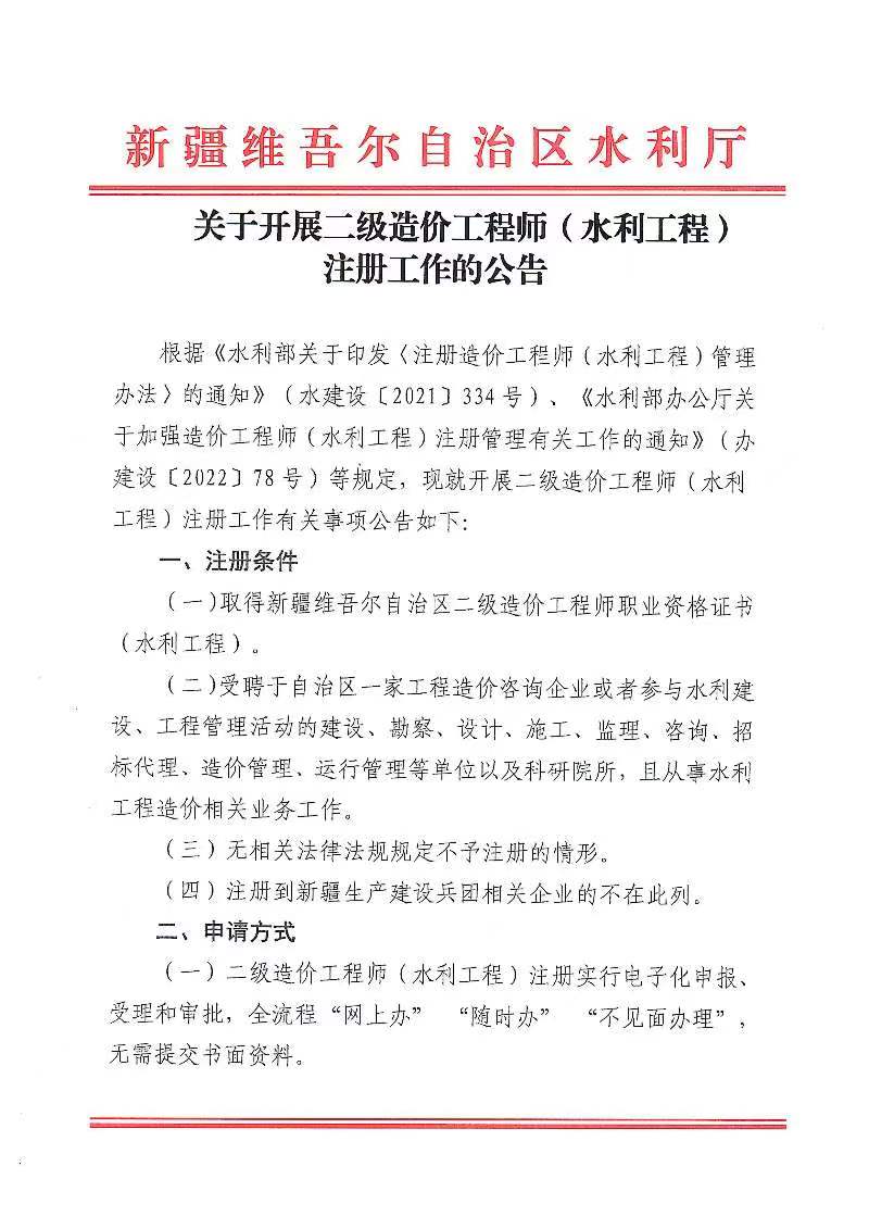 关于开展二级造价工程师(水利工程)注册工作的公告