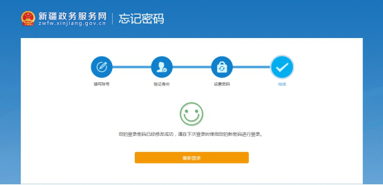 密码修改成功,点击“重新登录”,进入“登录”页面。