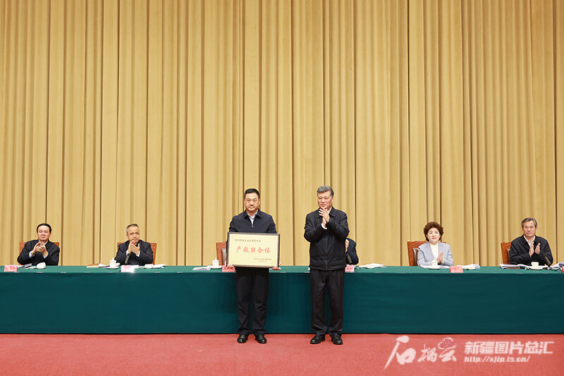 12月17日,自治区党委书记、兵团党委第一书记、第一政委马兴瑞为新疆首个国家级市域产教联合体——昌吉国家农高区现代农业产教联合体授牌。石榴云/新疆日报记者 崔志坚摄