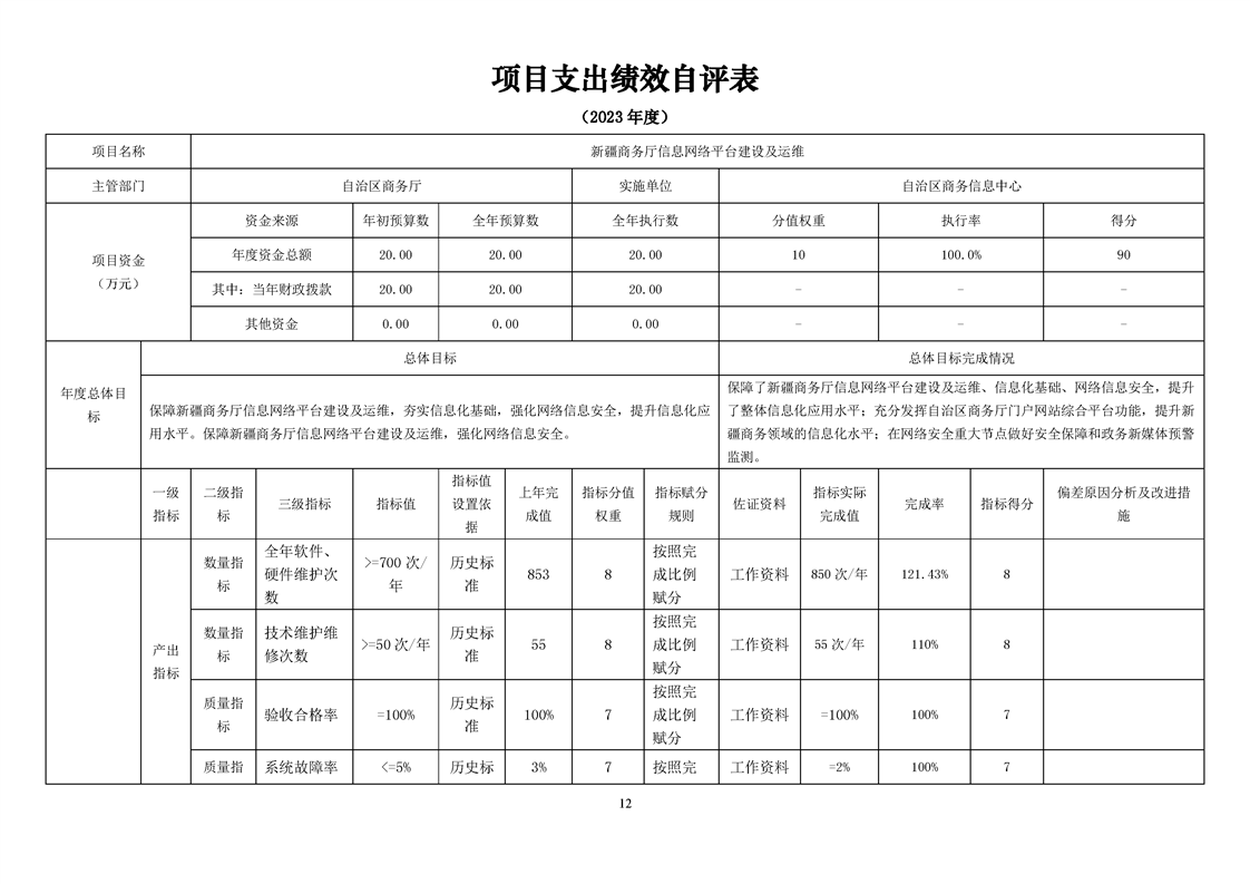 2023年新疆商务厅信息网络平台建设及运维项目支出绩效自评表.xlsx