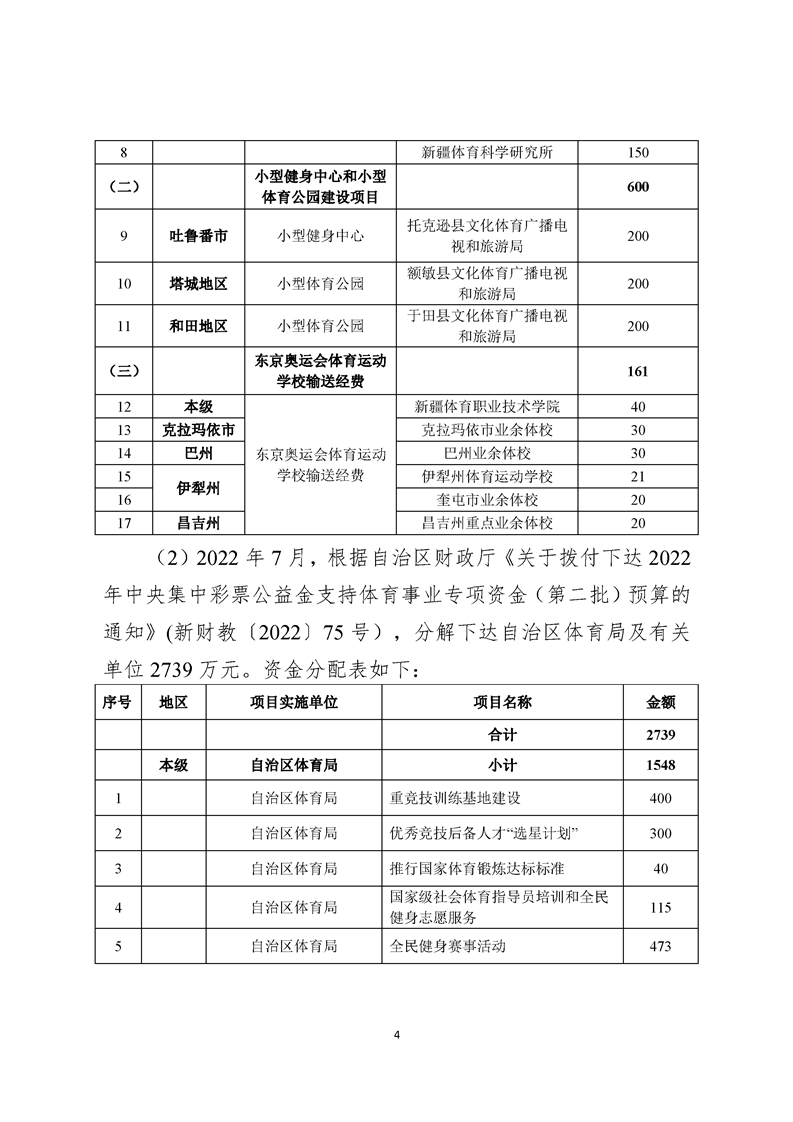 新疆 2022 年度中央集中彩票公益金支持体育事业专项资金(一般补助资金)转移支付绩效自评报告