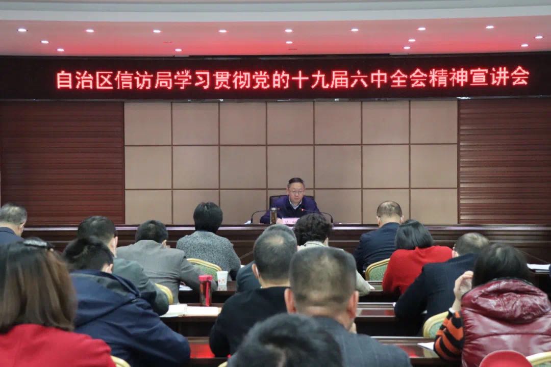 学习贯彻党的十九届六中全会宣讲会现场 近一段时间以来,自治区信访局将学习贯彻党的十九届六中全会精神作为当前和今后一个时期的重要政治任务,精心安排部署,采取多种形式推动学习宣传贯彻全会精神走深走实。在局党组(扩大)会议、局党组理论学习中心组、各支部集中学习后,12月1日,自治区政府副秘书长、信访局党组书记、局长吴坚结合学习十九届六中全会精神的体会,向全体干部职工进行专题宣讲,引领信访系统再次掀起学习全会精神的热潮。吴坚在宣讲报告中重点围绕深刻认识召开党的十九届六中全会、总结党的百年奋斗重大成就和历史经验的重大意义,深刻认识党的十九届五中全会以来党和国家各项事业取得的新的重大进展,深刻认识党的百年奋斗的初心使命和重大成就,深刻认识中国特色社会主义新时代的历史性成就和历史性变革,深刻认识党的百年奋斗的历史意义和历史经验,深刻认识以史为鉴、开创未来的重要要求,从党的百年奋斗历程中汲取智慧和力量等方面,对党的十九届六中全会精神进行了深入解读和深刻阐释。 吴坚作专题宣讲 吴坚从四个历史时期深入解读了党的百年奋斗历程和辉煌成就。他指出,《决议》用“十个明确”对习近平新时代中国特色社会主义思想的核心内容作了进一步概括。实践充分证明,习近平新时代中国特色社会主义思想是当代中国马克思主义、二十一世纪马克思主义,是中华文化和中国精神的时代精华,实现了马克思主义中国化新的飞跃。他强调,要牢牢把握以史为鉴、开创未来的重要要求,牢记中国共产党是什么、要干什么这个根本问题,永远保持同人民群众的血肉联系,继续推进新时代党的建设新的伟大工程,抓好后继有人这个根本大计,以行百里者半九十的清醒不懈推进中华民族伟大复兴。 他要求,全区信访干部要增强“四个意识”、坚定“四个自信”、做到“两个维护”,把学习宣传贯彻党的十九届六中全会精神作为当前和今后一个时期的重大政治任务,广泛深入开展学习、宣传、宣讲、培训、普及、研讨活动,营造学习贯彻浓厚氛围、掀起学习贯彻热潮。要把学习贯彻党的十九届六中全会精神,与学习贯彻党的十九大和十九届二中、三中、四中、五中全会精神结合起来,与学习贯彻习近平总书记在庆祝中国共产党成立100周年大会上重要讲话精神结合起来,与学习贯彻习近平总书记关于加强和改进人民信访工作的重要思想结合起来,与学习贯彻习近平总书记关于新疆工作的重要讲话和重要指示精神结合起来,与学习贯彻中央民族工作会议精神和第三次中央新疆工作座谈会精神结合起来,与学习贯彻新时代党的治疆方略、特别是社会稳定和长治久安总目标结合起来,与扎实开展党史学习教育结合起来,与落实自治区第十次党代会的各项部署做好我区信访工作结合起来,推动学习贯彻往深里走、往心里走、往实里走,汲取推动新时代信访工作高质量发展的强大力量,以优异成绩迎接党的二十大胜利召开。