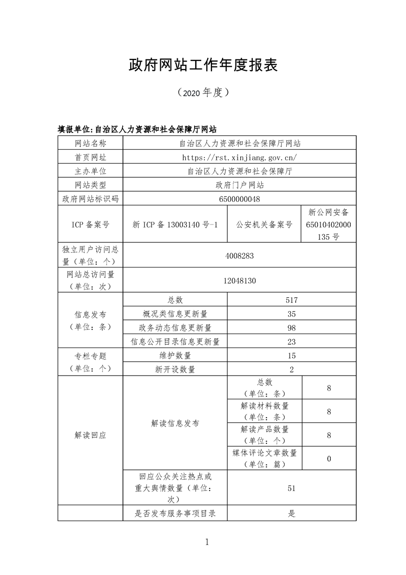 新疆维吾尔自治区政府网站年度报表(2020年)
