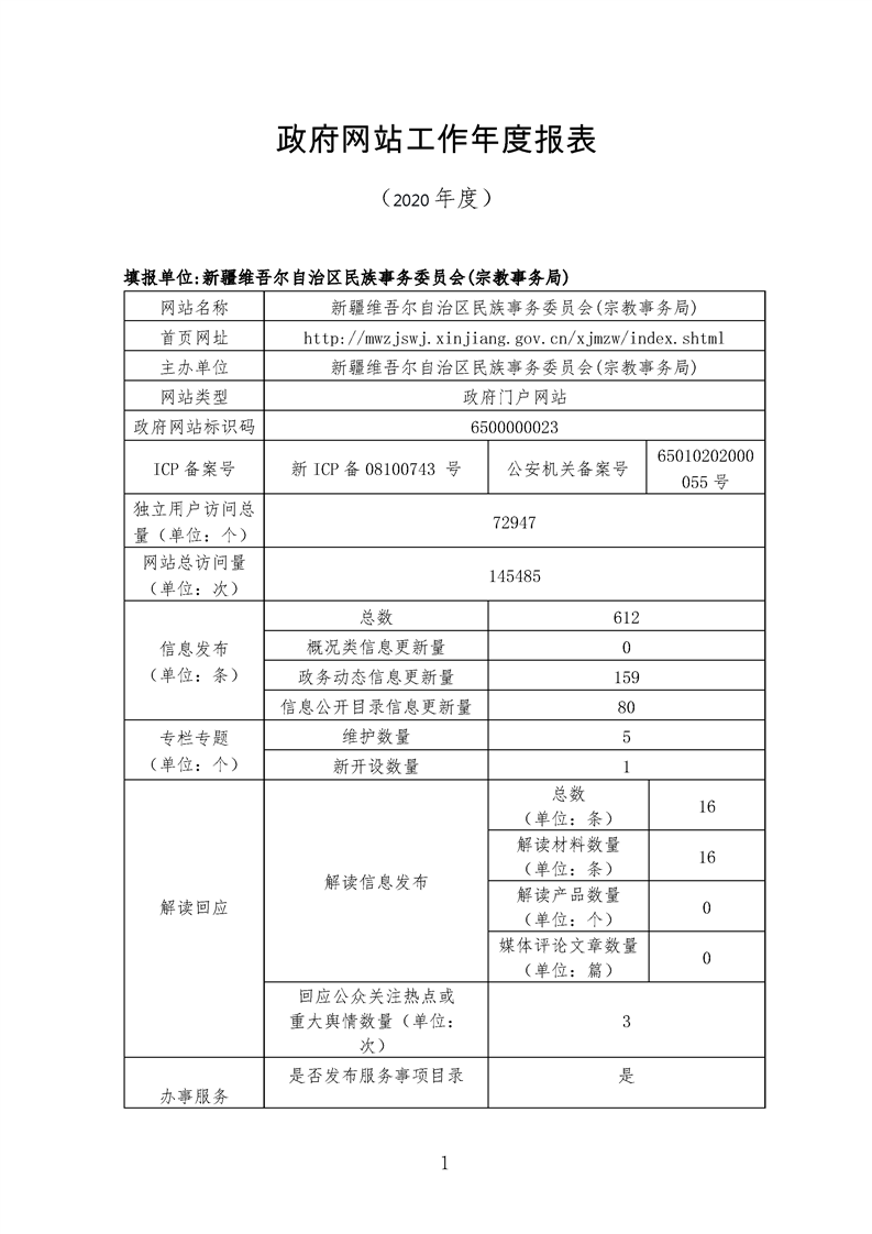 新疆维吾尔自治区政府网站年度报表(2020年)