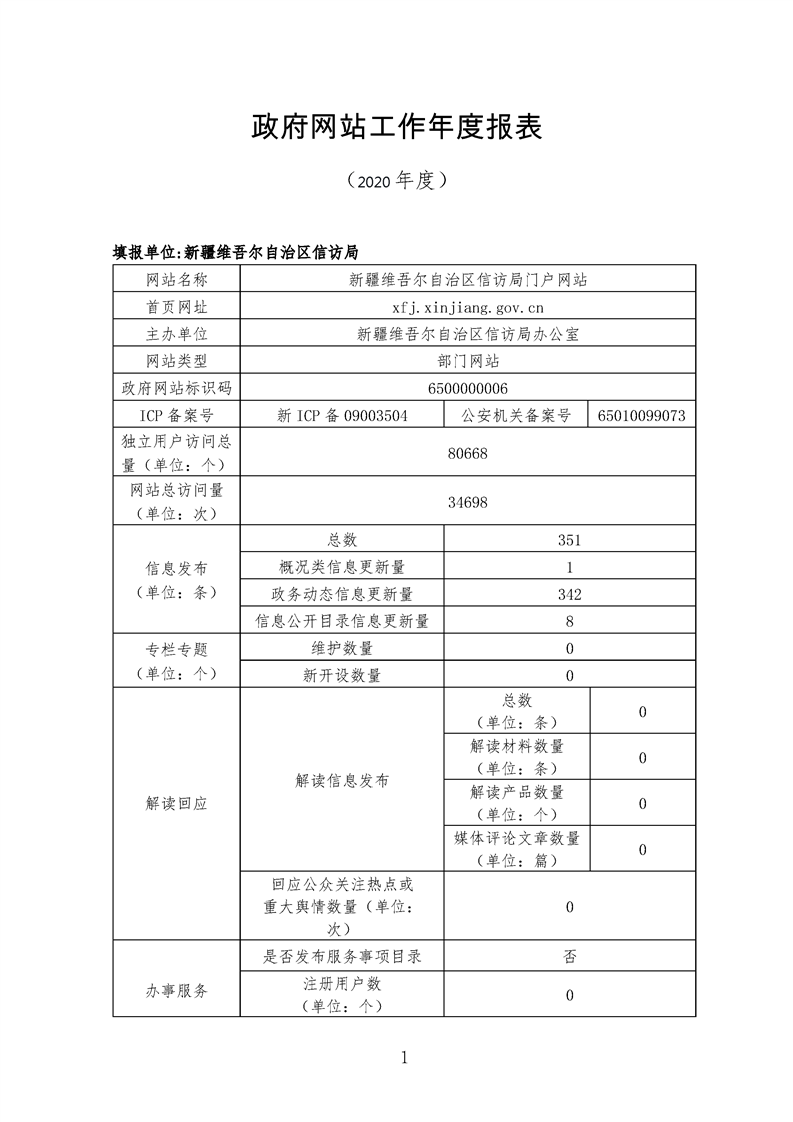 新疆维吾尔自治区政府网站年度报表(2020年)