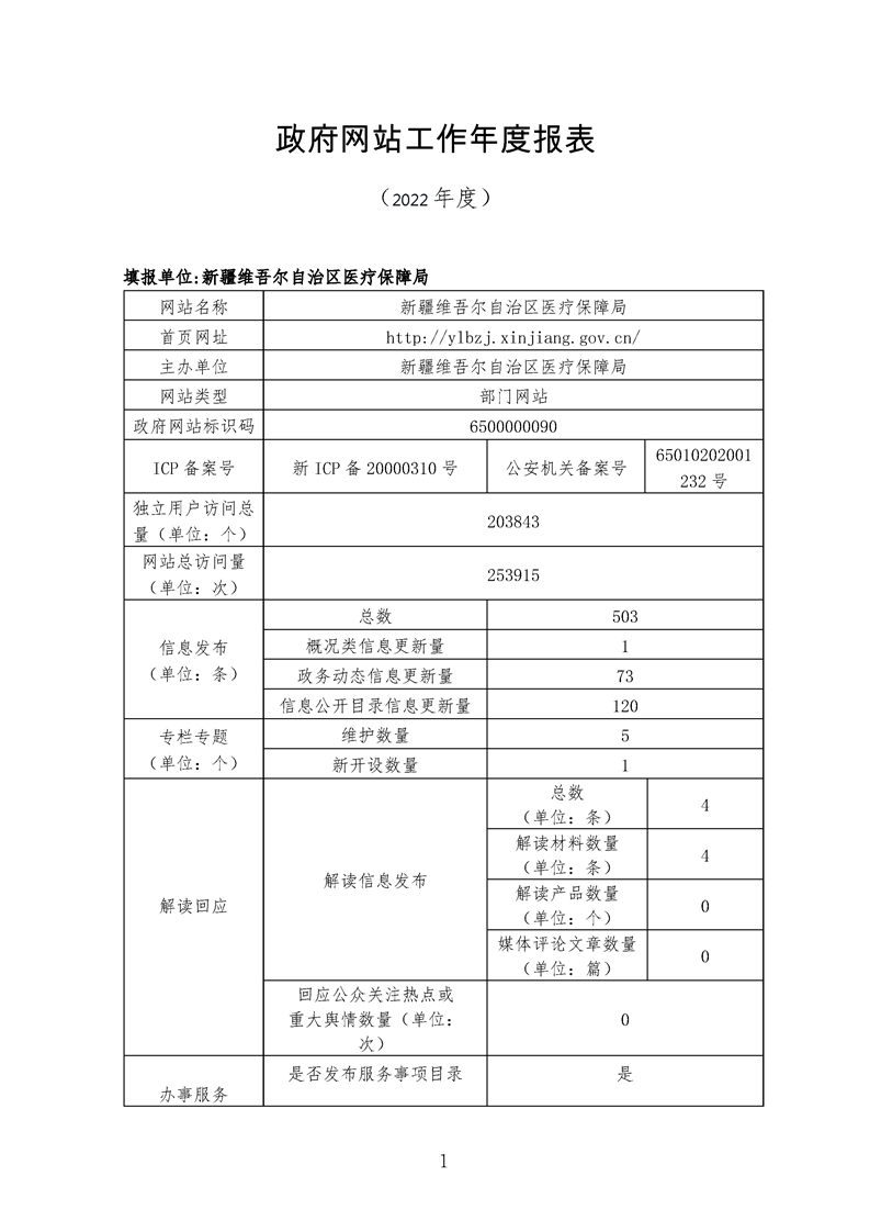 新疆维吾尔自治区政府网站年度报表(2022年)