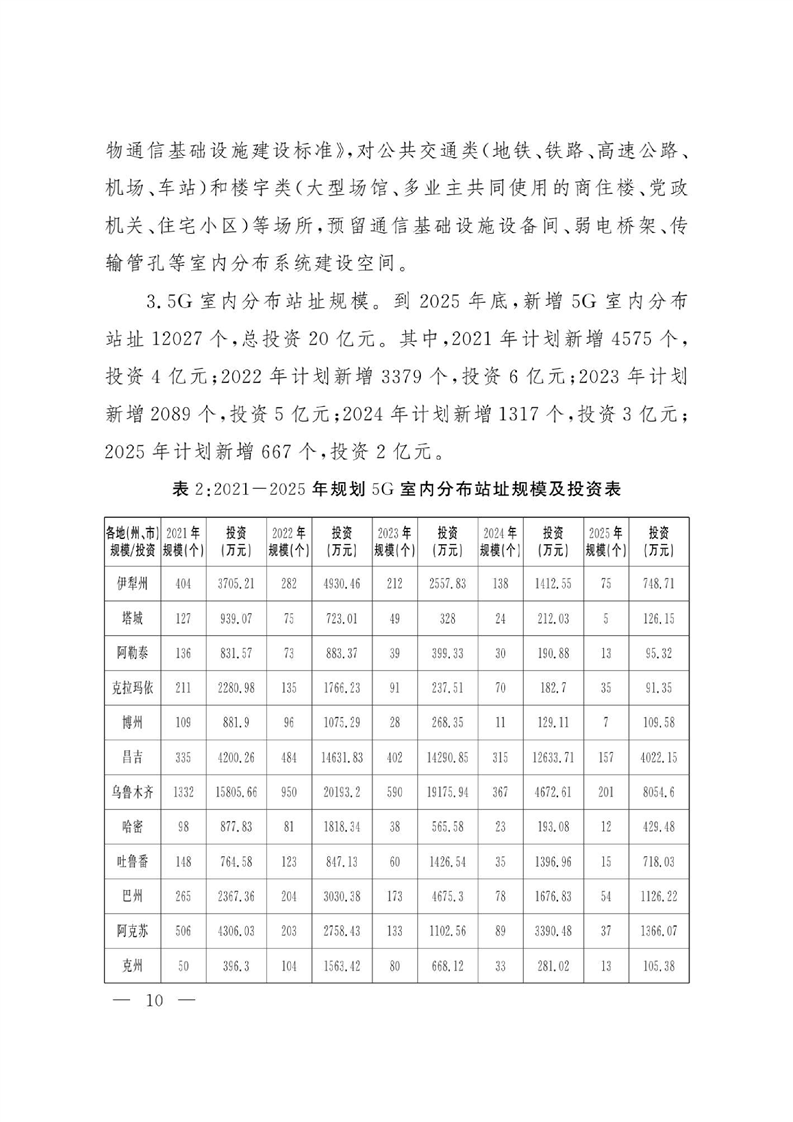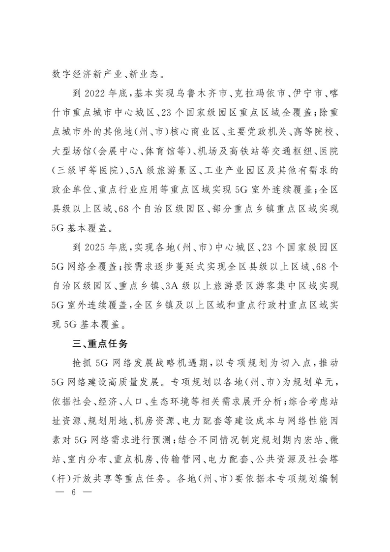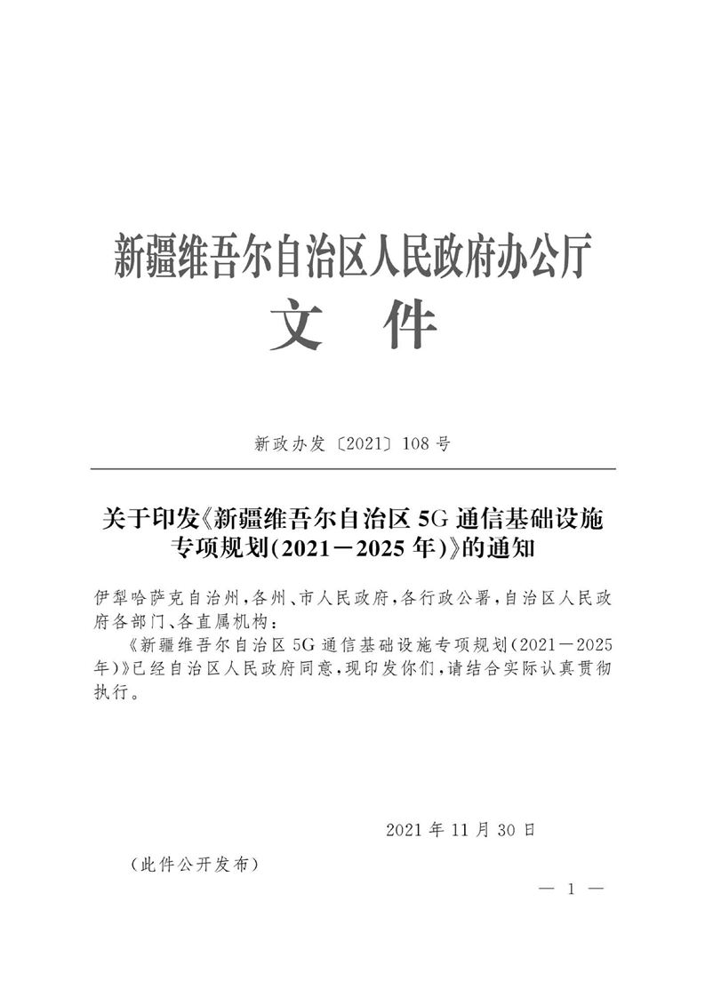关于印发《新疆维吾尔自治区5G通信基础设施专项规划(2021-2025年)》的通知