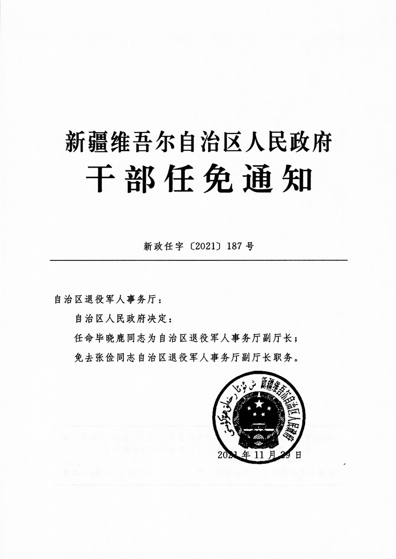 关于毕晓鹿等同志职务的任免通知