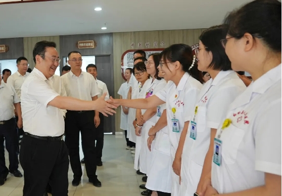 在调研和田县人民医院时,夏林茂一行详细了解北京医疗援疆工作开展情况,看望慰问北京援疆医生,并参加北京同仁堂中医医院与和田县人民医院合作共建揭牌仪式。夏林茂鼓励北京援疆医生把优质医疗资源带到和田,充分发挥“北京援疆医疗专家线上挂号系统”作用,发挥“种子”作用,做好“传帮带”,帮助和田提升医疗服务水平,打造带不走的医疗队。