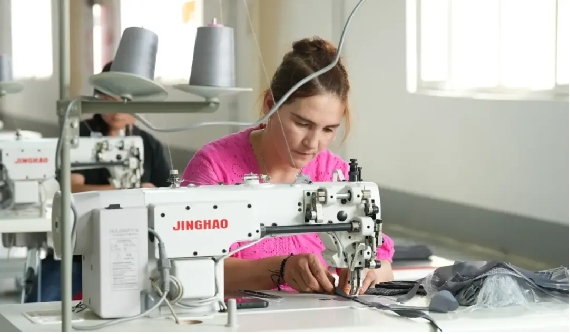 吐尔逊巴依·阿布都热合曼是新疆鑫莉来箱包有限公司的员工,主要负责厂房里面的协调工作以及检查产品是否不合格,他说:这厂子离我家近,上下班非常方便,一个月工资能拿到3000元左右。”