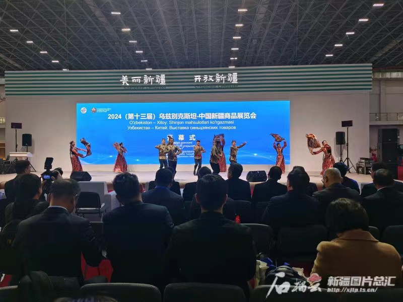 3月30日,2024(第十三届)乌兹别克斯坦—中国新疆商品展览会在乌兹别克斯坦首都塔什干开幕。图为开幕式现场,演员正在表演舞蹈。石榴云/新疆日报记者 黑宏伟摄