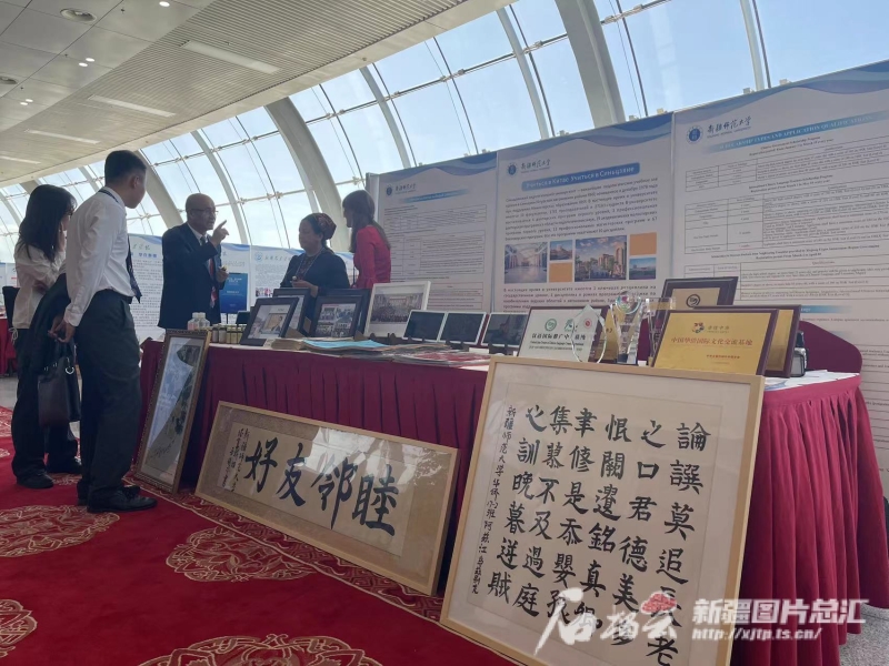 6月27日,在“留学中国·学在新疆”教育推广展上,新疆师范大学展出了学校留学生的书法等作品。石榴云/新疆日报记者 赵西娅摄