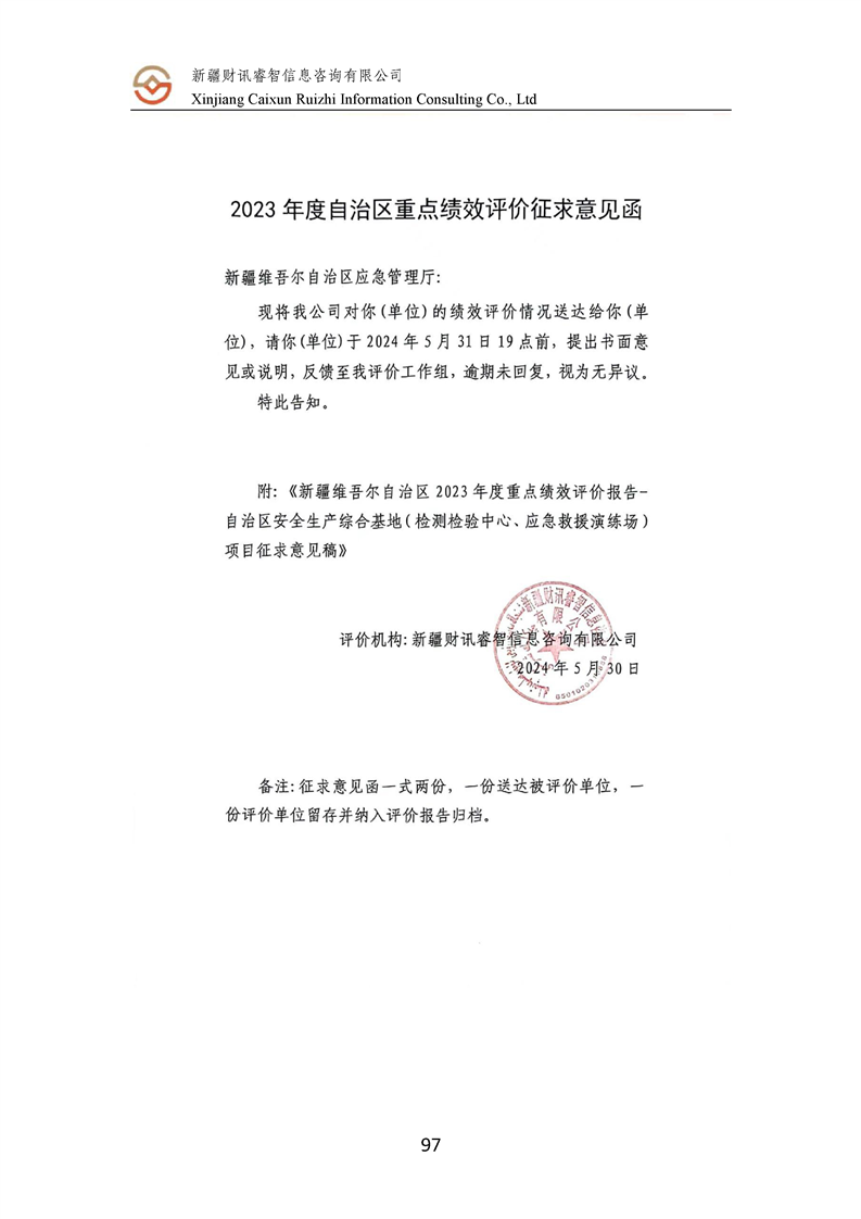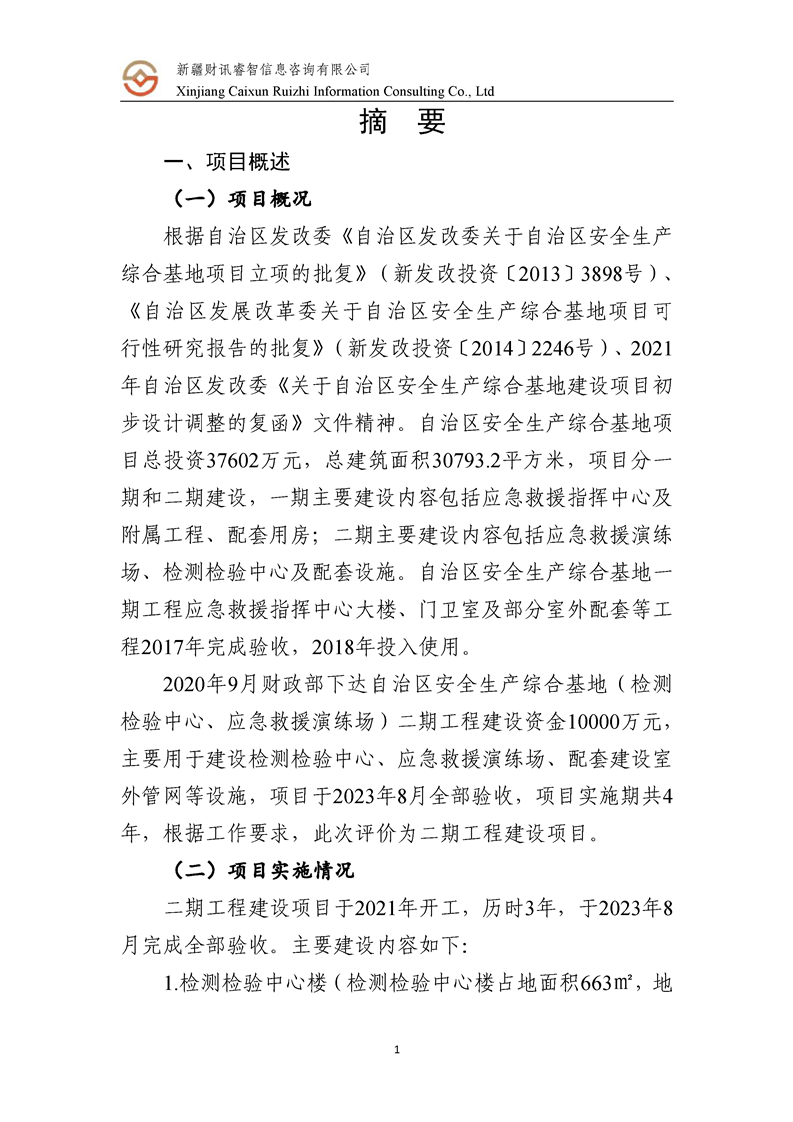 新疆维吾尔自治区2023年度安全生产综合基地(检测检验中心、应急救援演练场)项目支出绩效评价报告