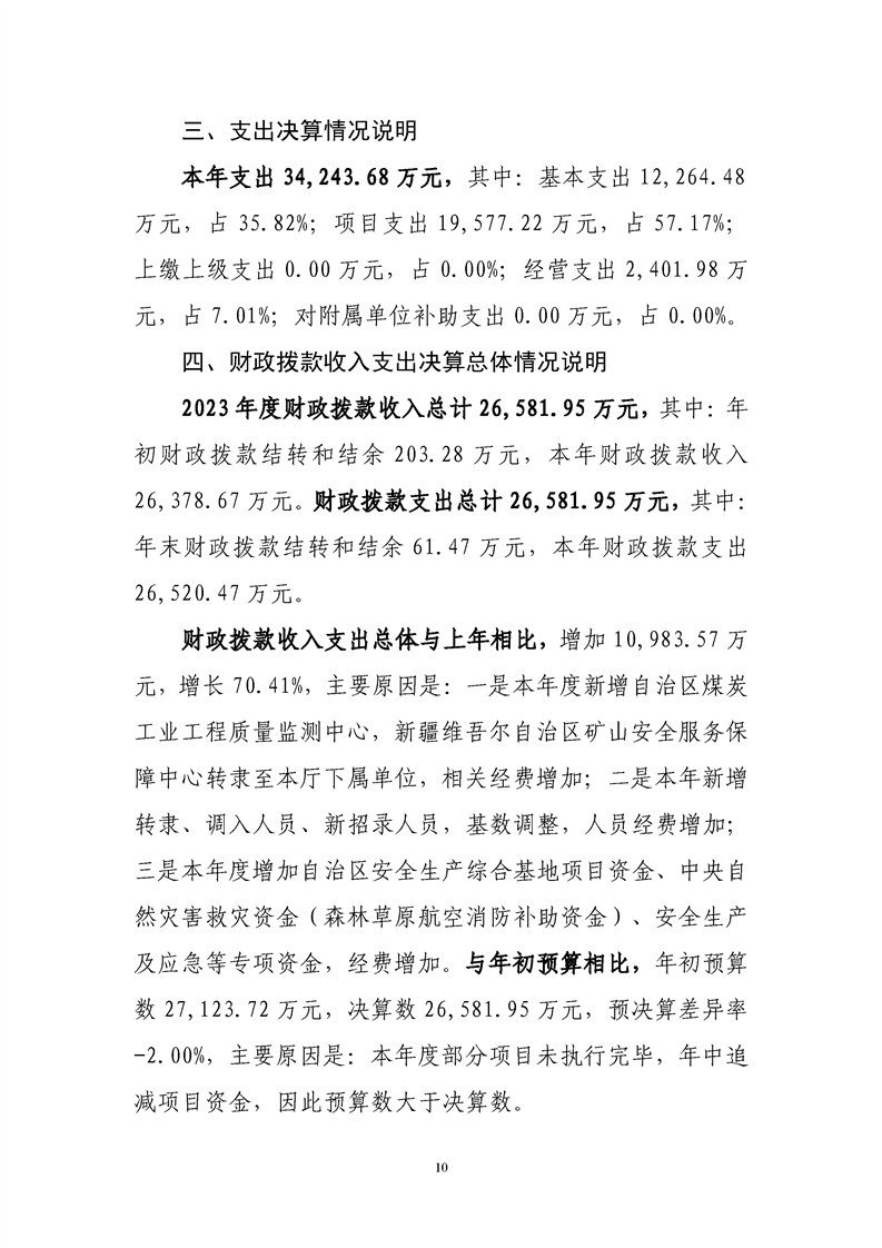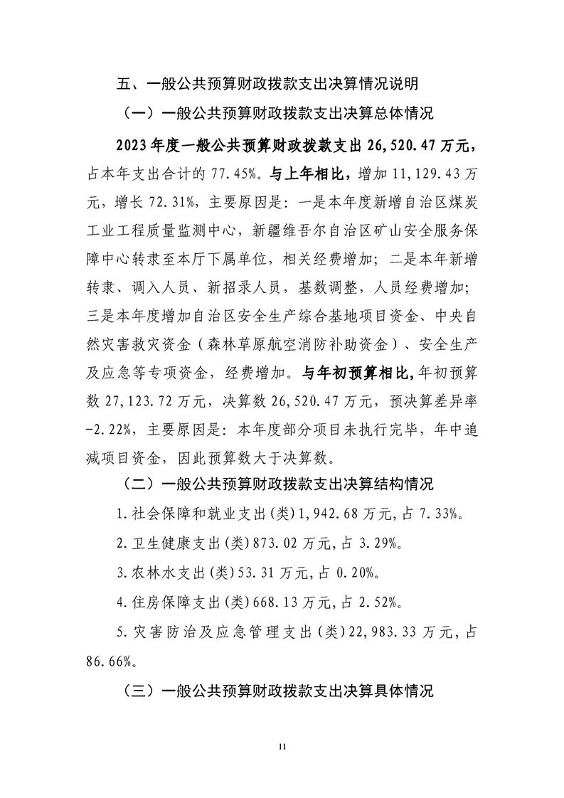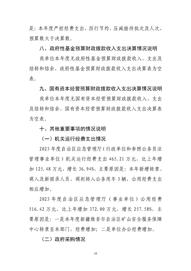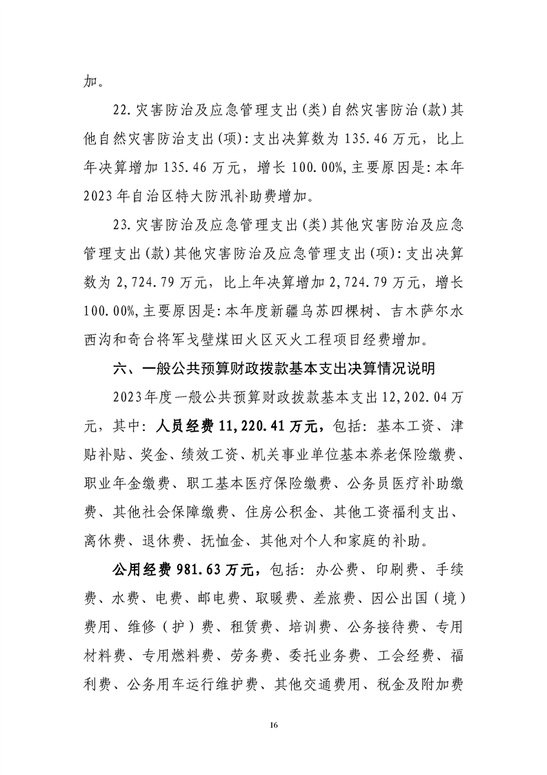 2023年度新疆维吾尔自治区应急管理厅决算公开说明