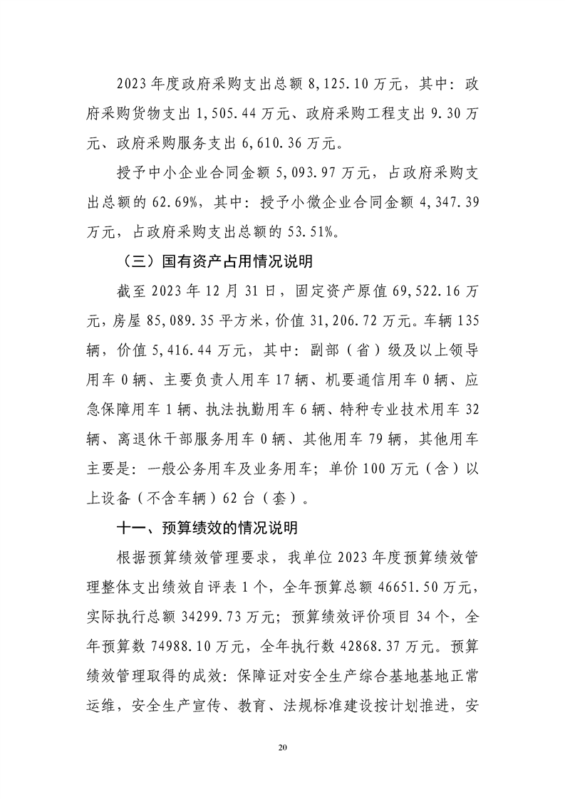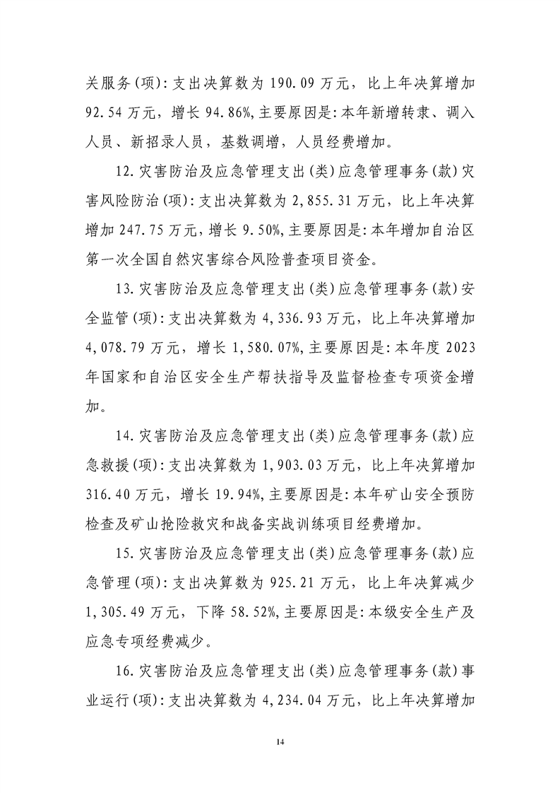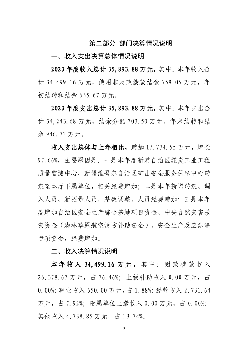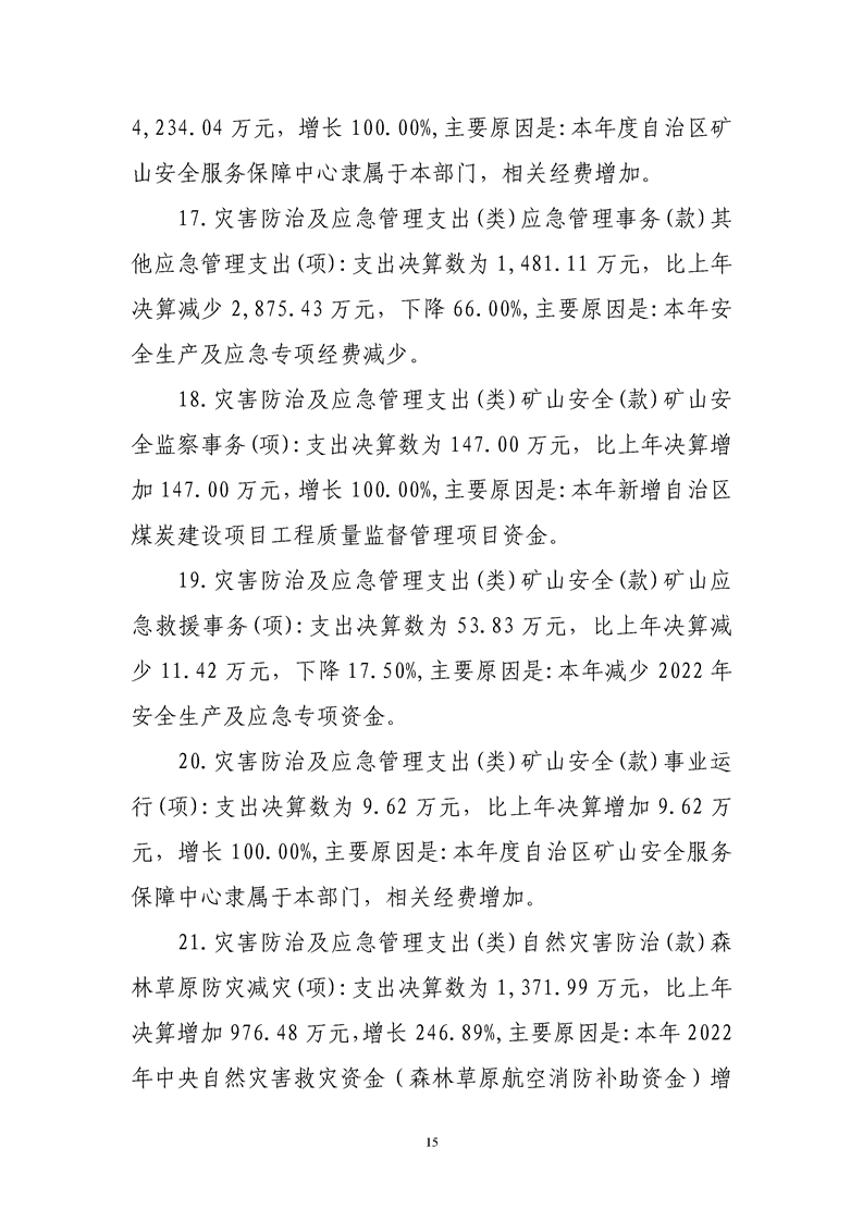 2023年度新疆维吾尔自治区应急管理厅决算公开说明