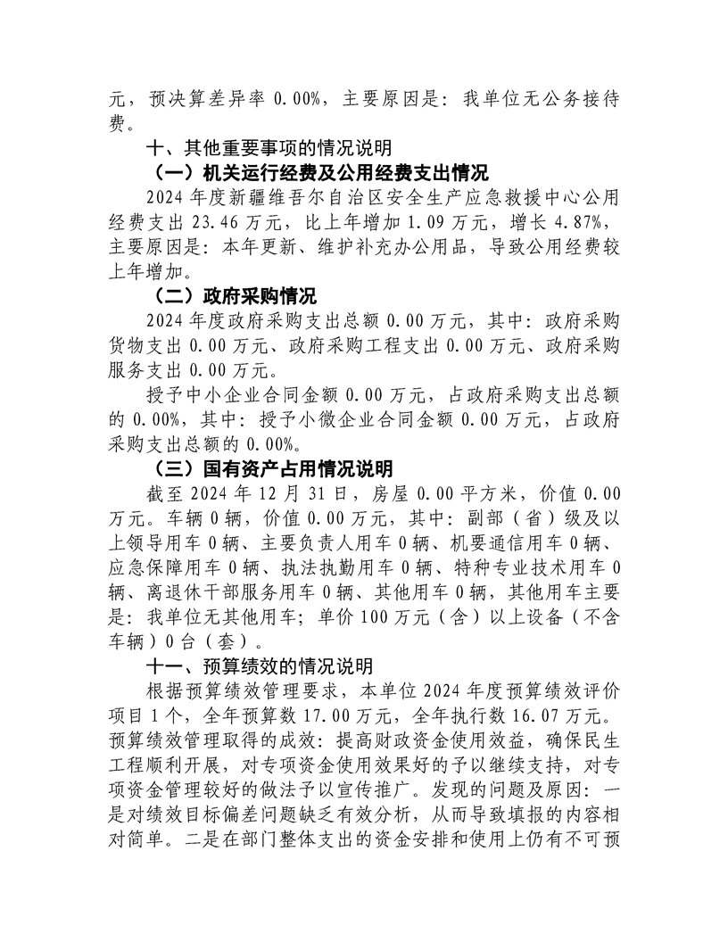 2024年度新疆维吾尔自治区安全生产应急救援中心决算公开
