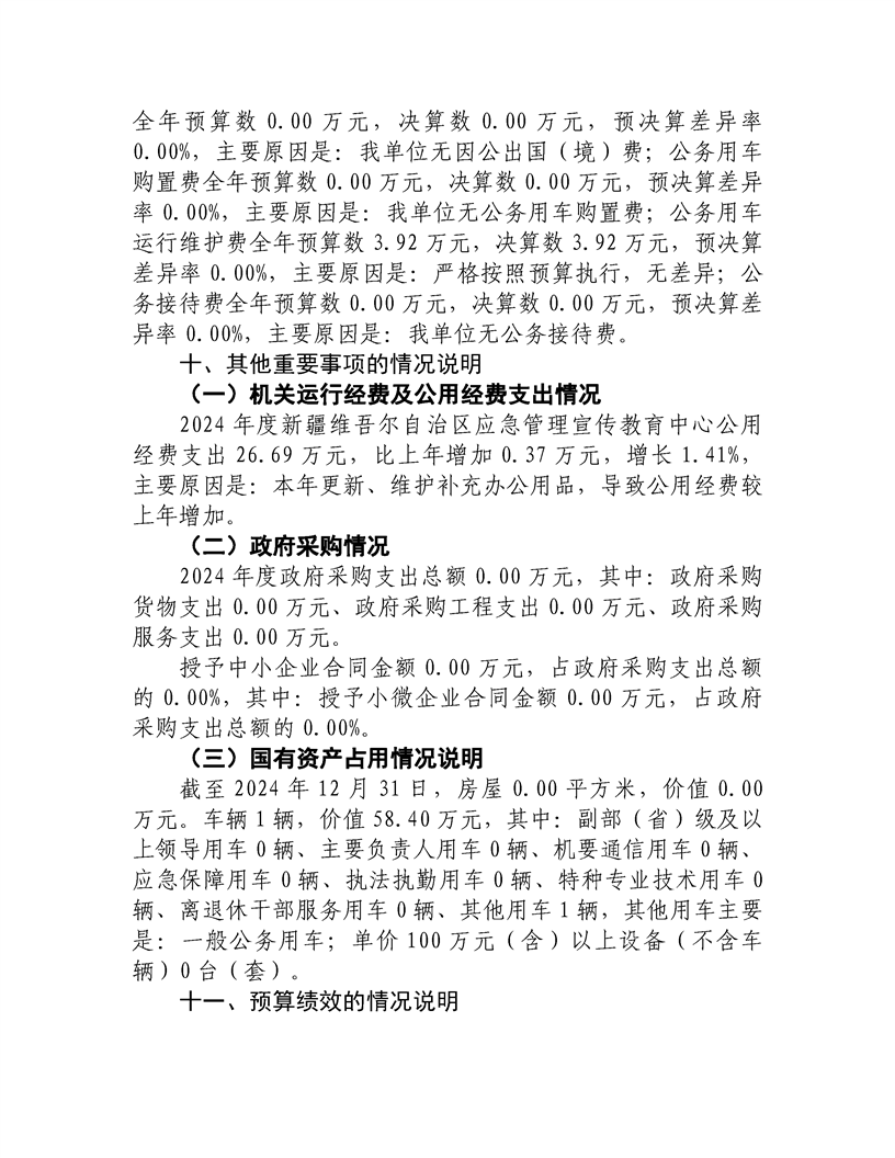 2024年度新疆维吾尔自治区应急管理宣传教育中心决算公开