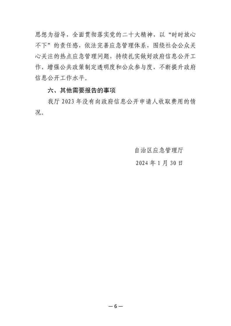 新疆维吾尔自治区应急管理厅2023年政府信息公开工作年度报告